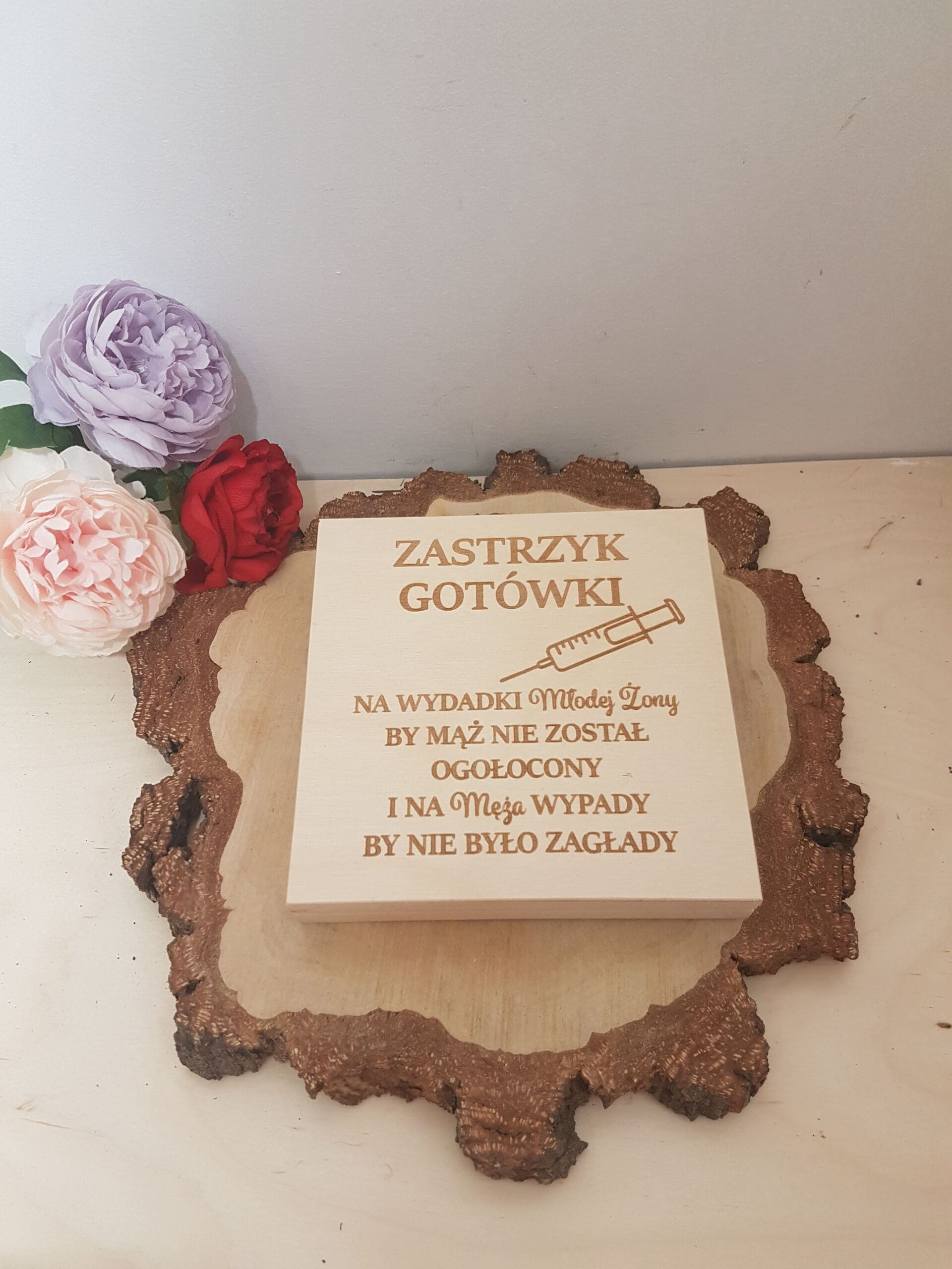 Zastrzyk gotówki w tak oryginalnym opakowaniu z pewnością ucieszy nowożeńców. Wykonane z wysokiej jakości drewna pudełko gwarantuje trwałość i estetyczny wygląd.