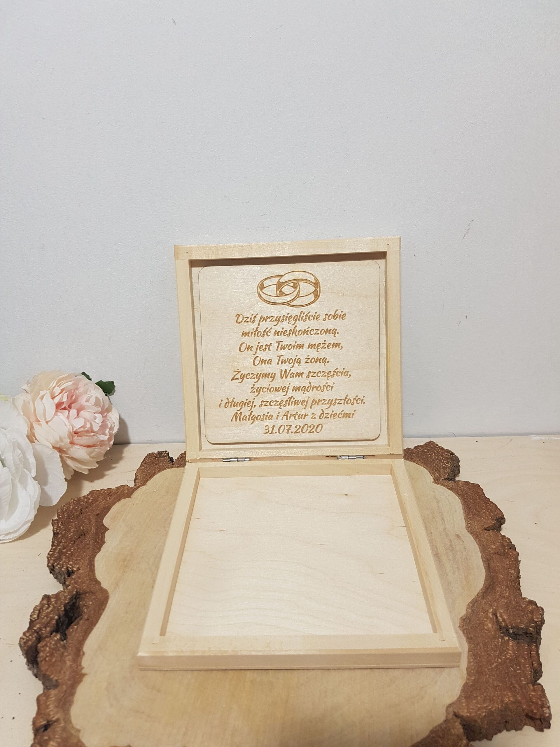 Drewniana Koperta na Ślub – Elegancki Prezent z Pamiątkowym Grawerem