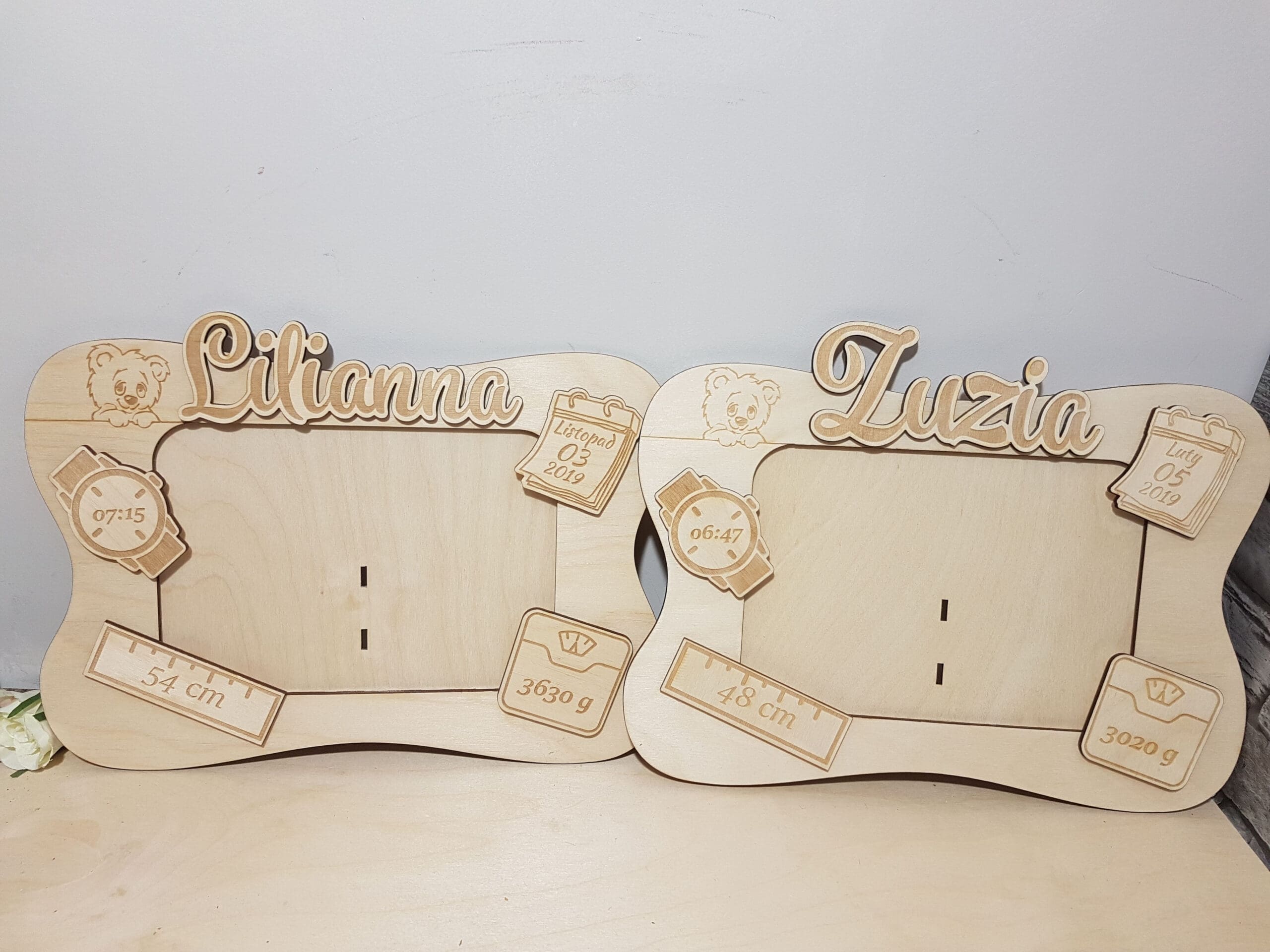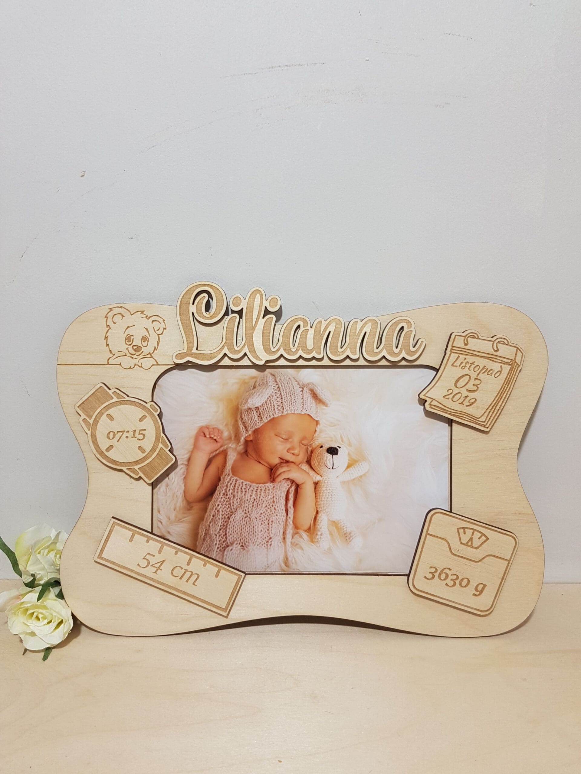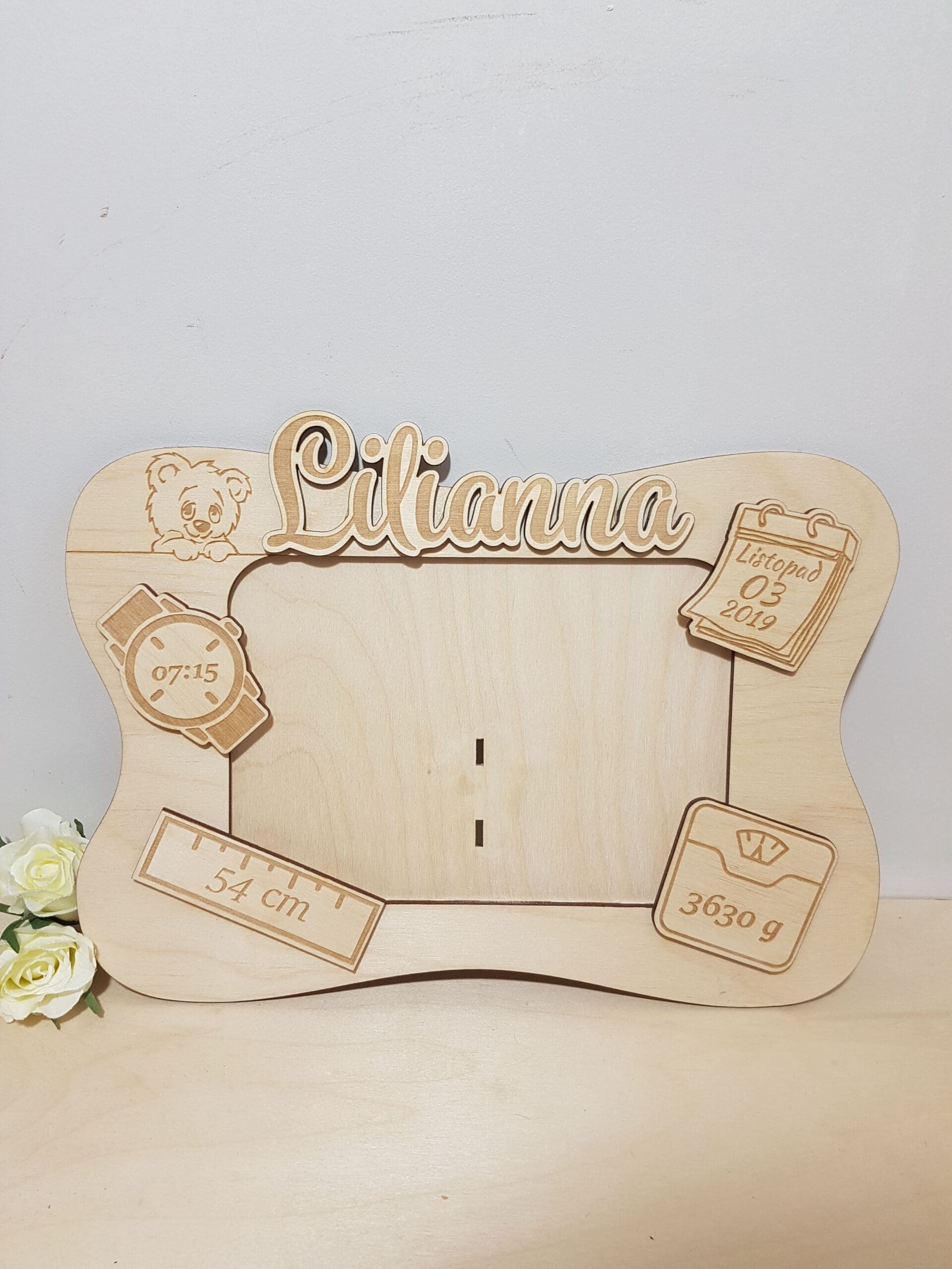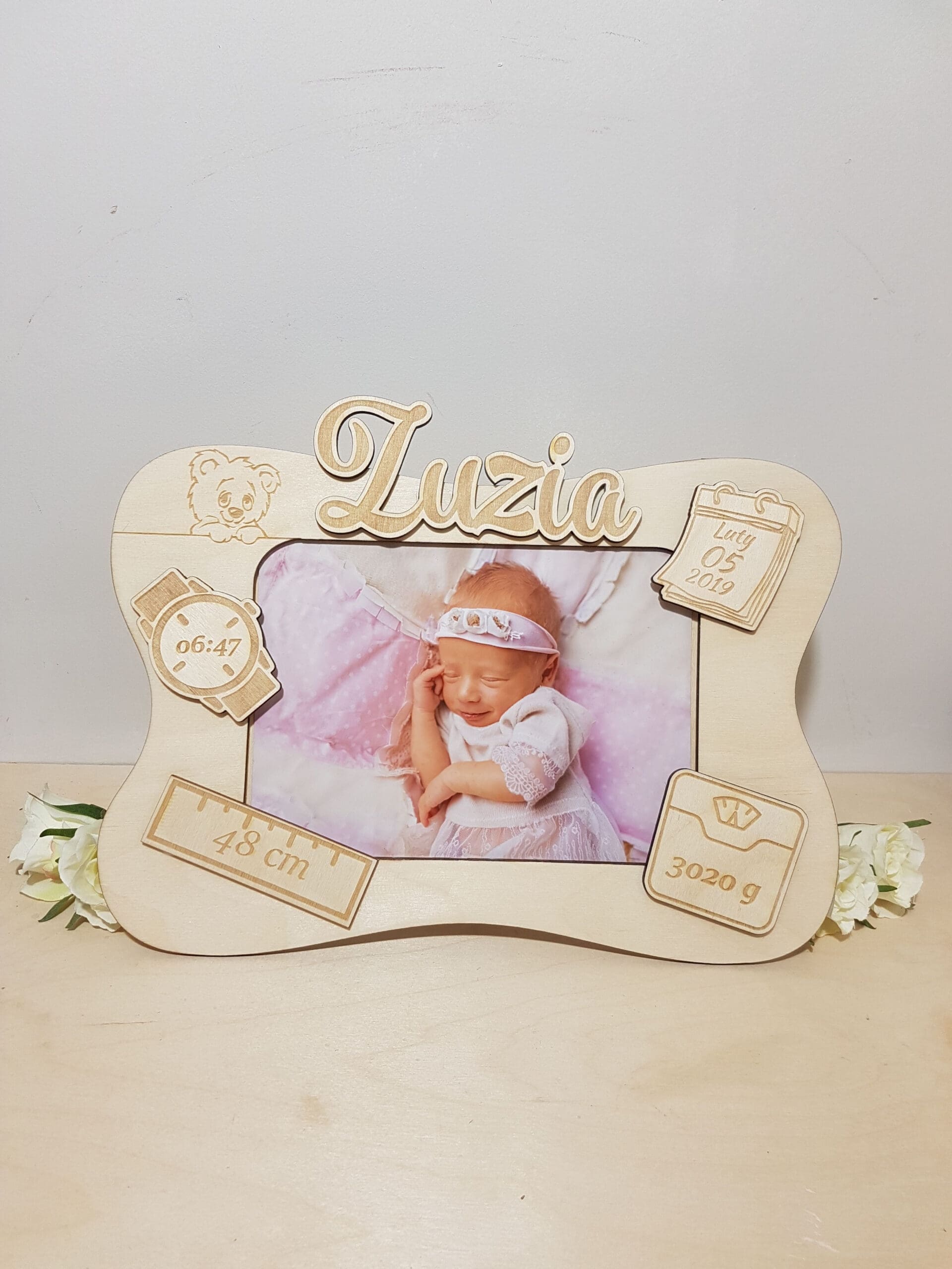 Spersonalizowana ramka metryczka jest to niepowtarzalny prezent dla małego dziecka oraz dumnych rodziców. Przypadnie do gustu wszystkim, którzy cenią oryginalne dekoracje. Ramka sprawi, że wspomnienia ważnych chwil będą zawsze przy Tobie. Piękny element wystroju pokoiku dziecka. Idealna również jako prezent z okazji pierwszej wizyty u Maluszka, Chrztu, czy urodzin. Ramka grawerowana laserowo, wykonana jest z wysokiej jakości sklejki brzozowej. Tył ramki zabezpieczony jest stabilnym stojakiem.