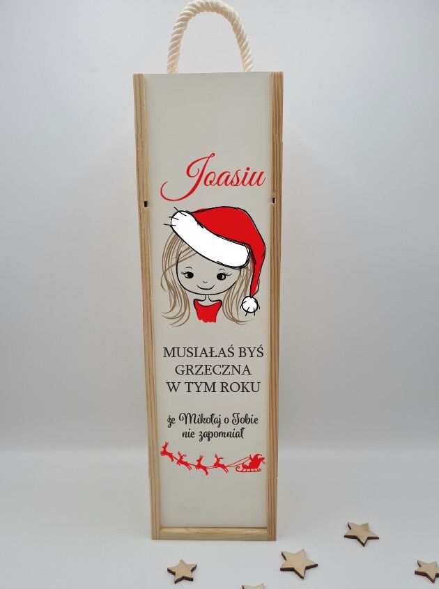Szukasz oryginalnego prezentu na święta? Ta personalizowana drewniana skrzynka na alkohol z zabawnym grawerem „Musiałaś być grzeczna w tym roku” to strzał w dziesiątkę! Idealna na wino, whisky lub inny trunek. Dodaj imię obdarowanej osoby i stwórz niepowtarzalny upominek.