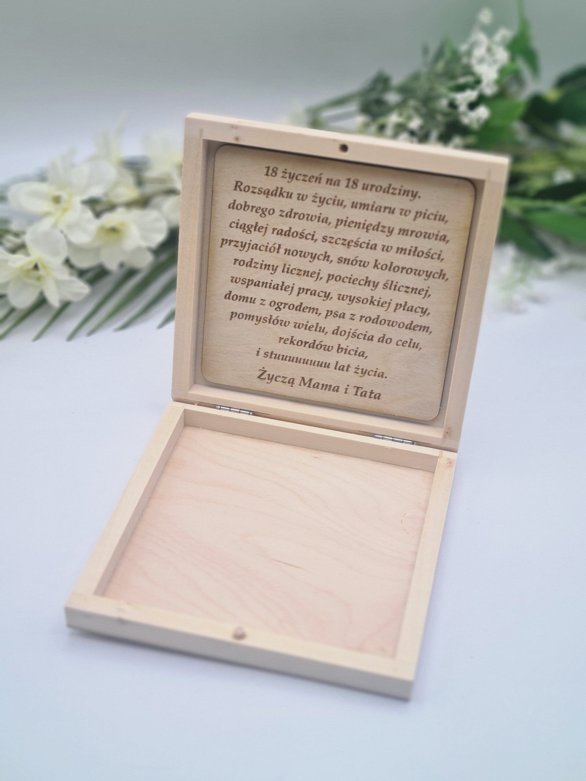 W środku pudełka wygrawerowane jest 18 życzeń na 18 urodziny 🙂