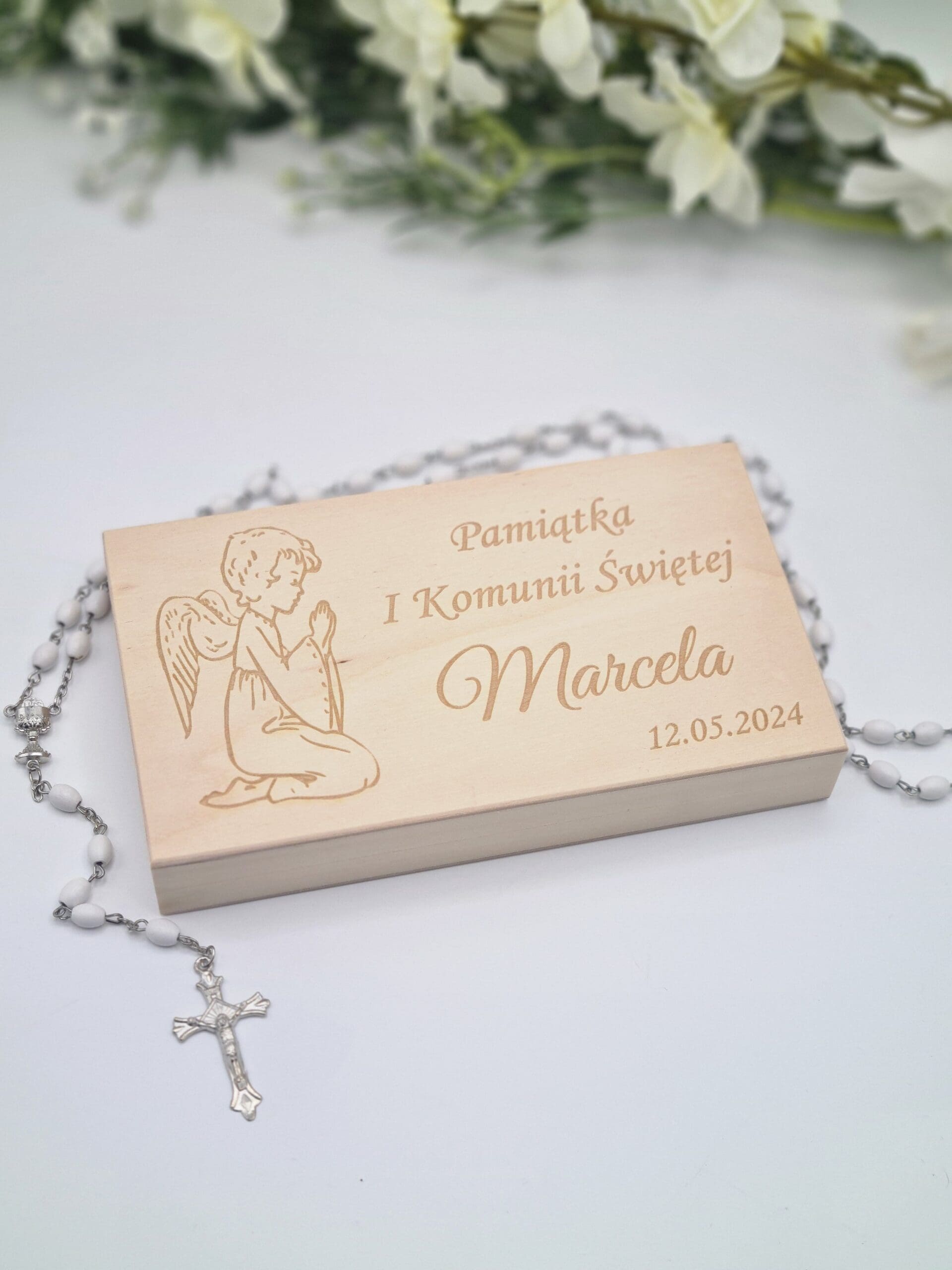 Drewniane pudełko na banknoty aniołek chłopiec.
