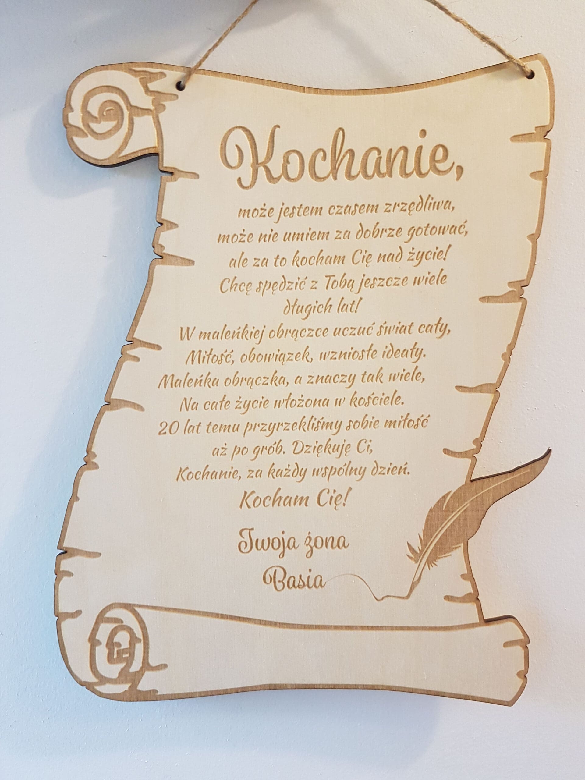 Drewniany dyplom z personalizowanym grawerem – idealny prezent na rocznicę ślubu, symbolizujący trwałość i naturalne piękno Waszej miłości.