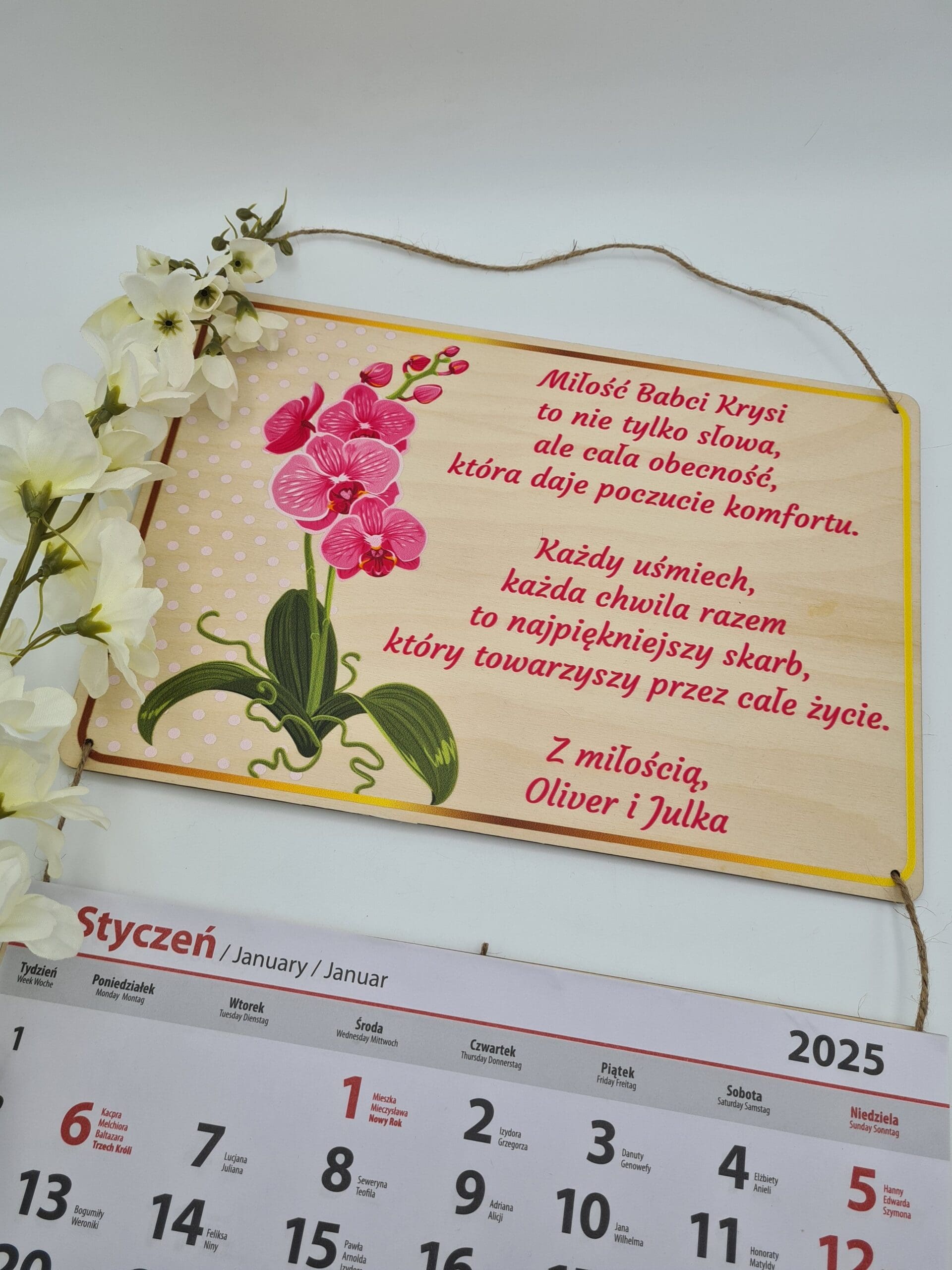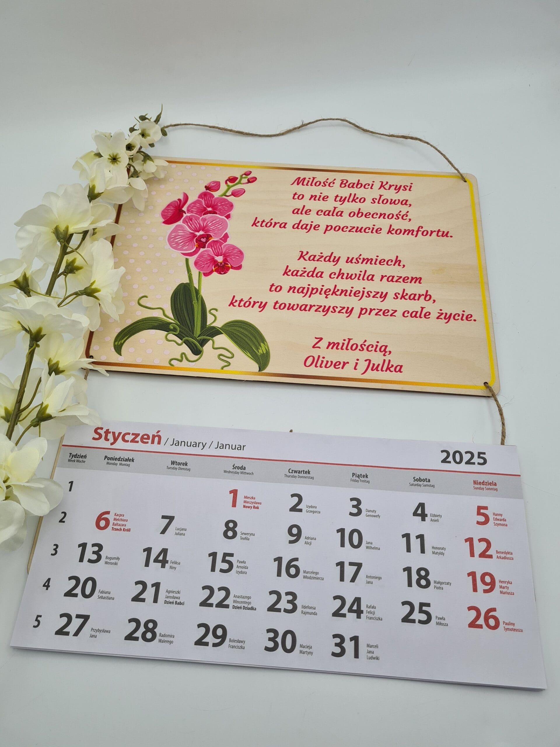 Szukasz wyjątkowego prezentu dla swojej babci? 🌸 Kalendarz na rok 2025 z personalizowaną dedykacją to idealny upominek, który łączy funkcjonalność z emocjonalnym akcentem.