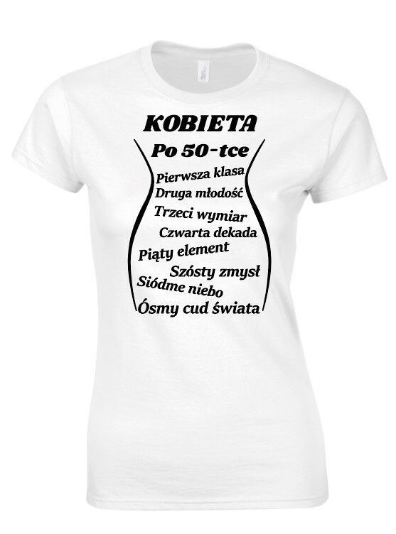 Koszulka damska z nadrukiem 30,40,50 lat- Kobieta po …