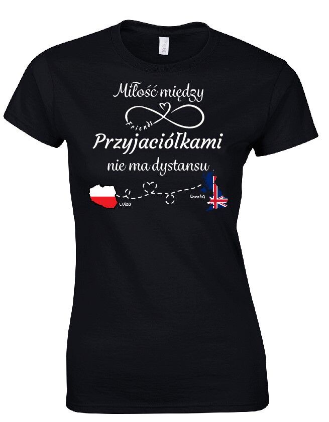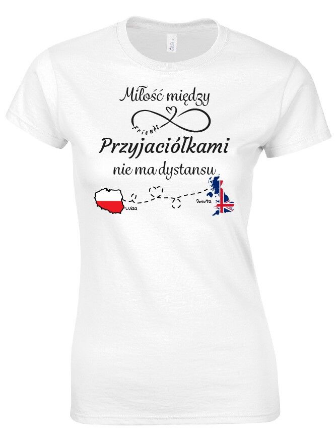 Koszulka z nadrukiem „Miłość między Przyjaciółkami nie ma dystansu” – idealny prezent dla przyjaciółki lub do noszenia na co dzień !
