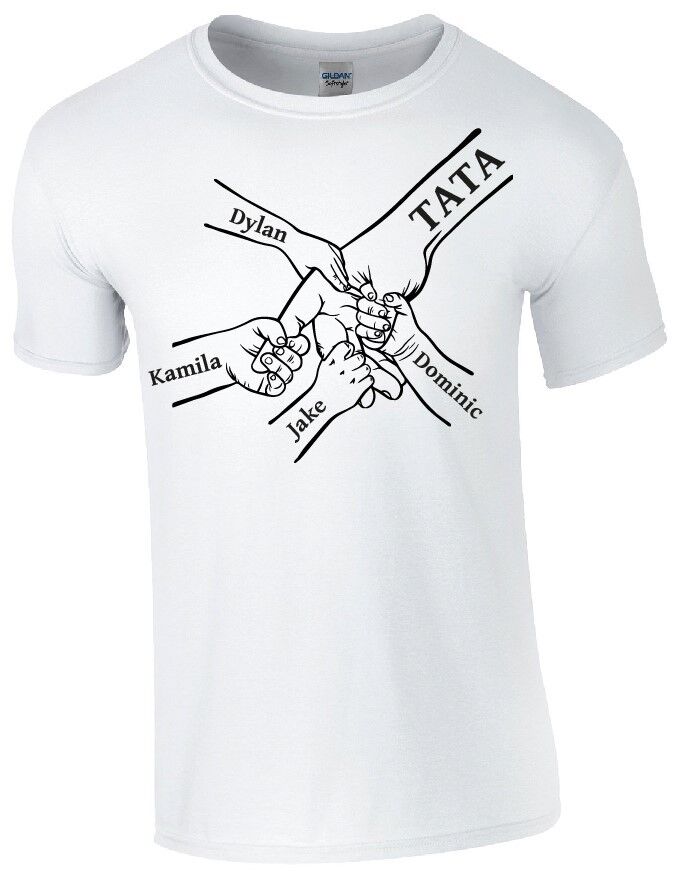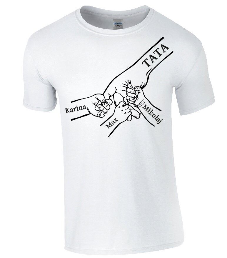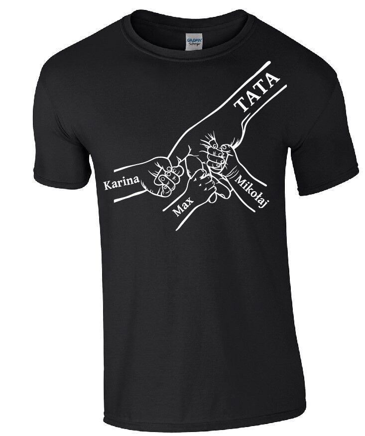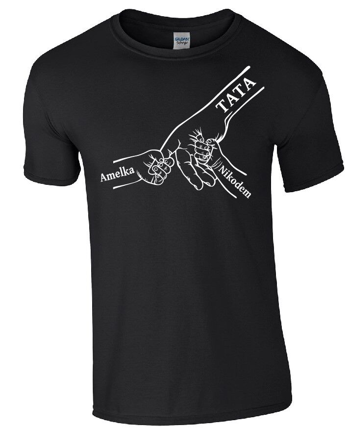 Szukasz wyjątkowego upominku dla taty? Ta koszulka prezent na Dzień Ojca to idealny sposób, by pokazać, jak ważna jest więź między tatą a dziećmi. Grafika przedstawiająca dłoń ojca oraz dłonie dzieci z ich imionami tworzy wzruszający i niepowtarzalny nadruk, który z pewnością poruszy każde ojcowskie serce.