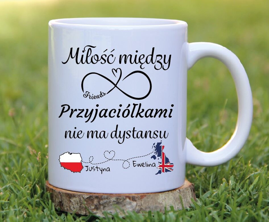Kubek „Między przyjaciółkami nie ma dystansu” – idealny prezent dla bratniej duszy