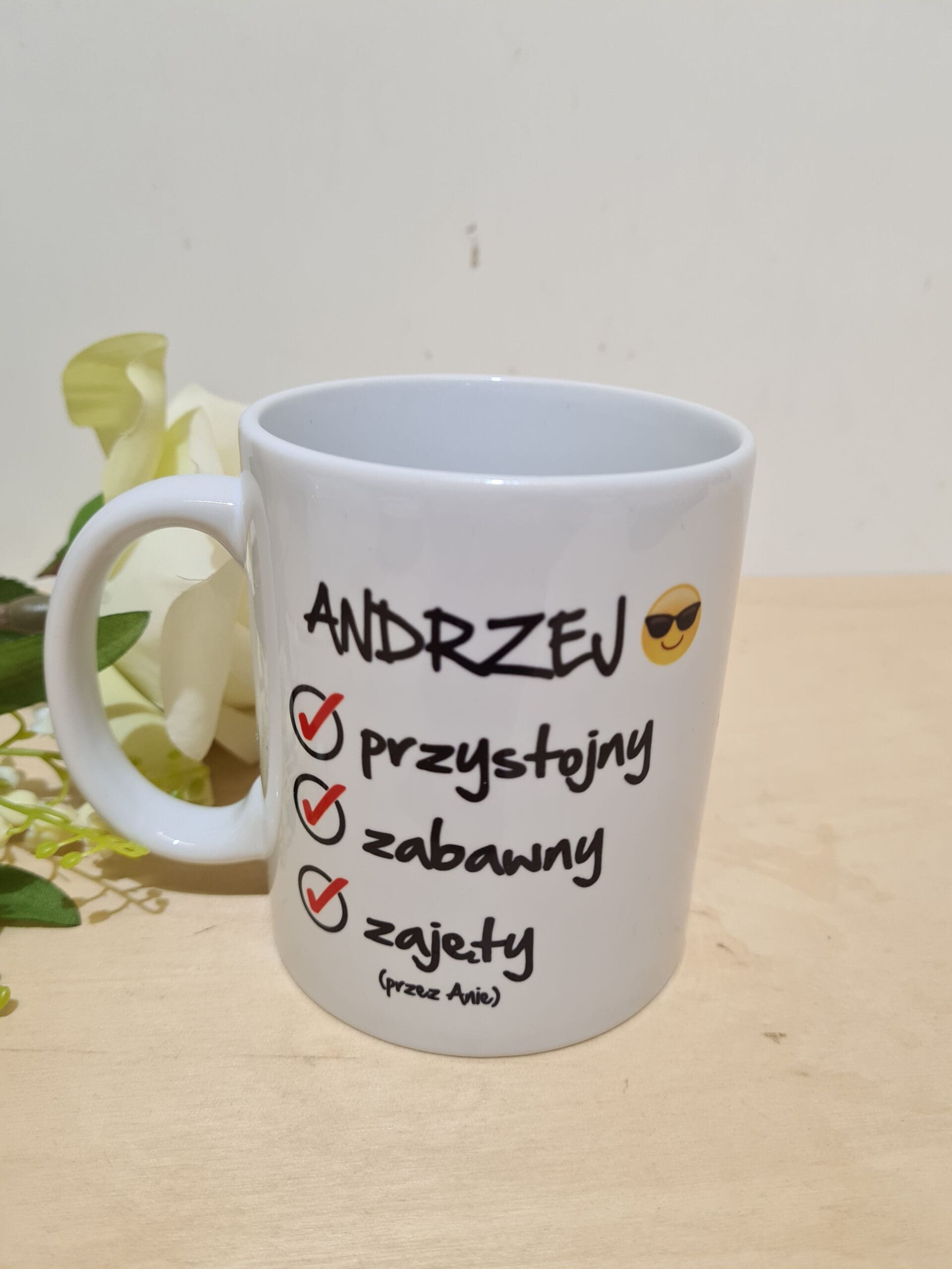 – Biały kubek ceramiczny z nadrukiem klasy AAA o pojemności 330ml.