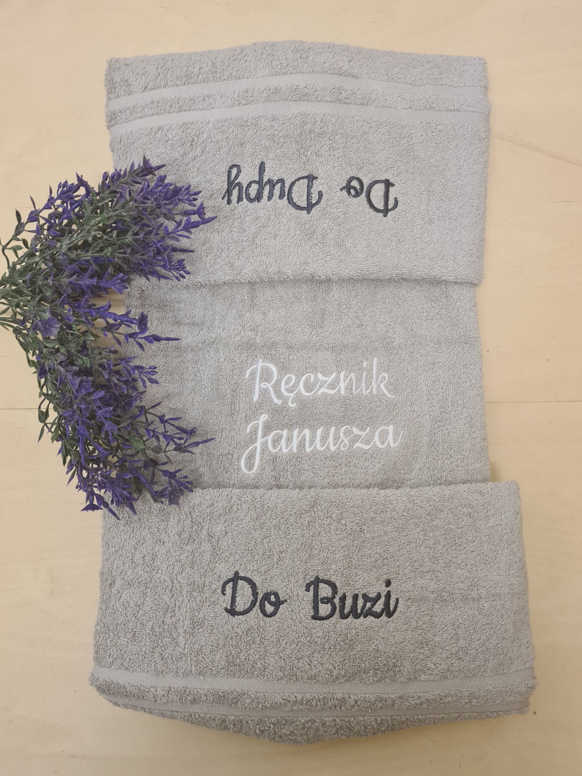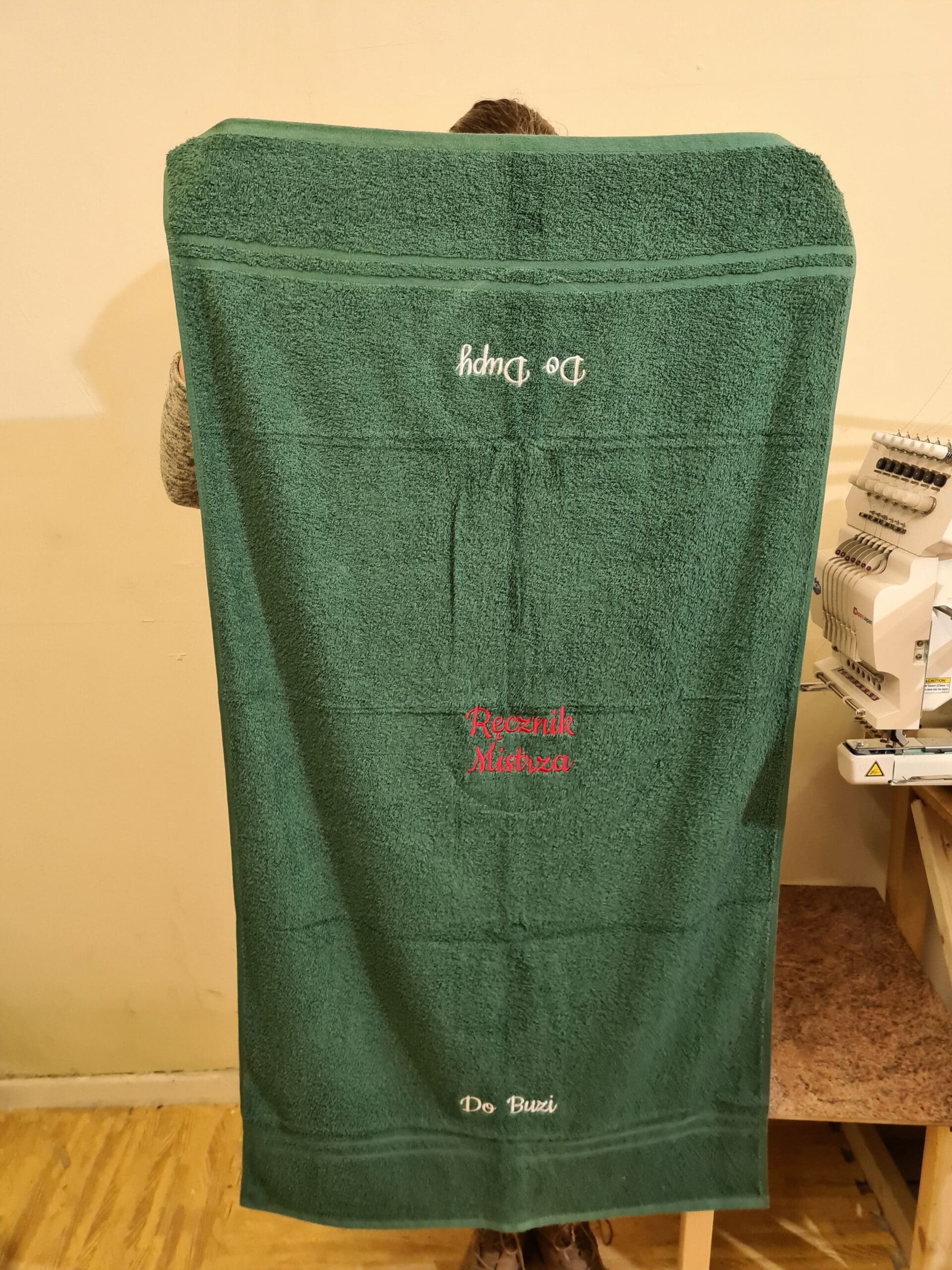 Na powierzchni ręcznika wyhaftujemy teksty: