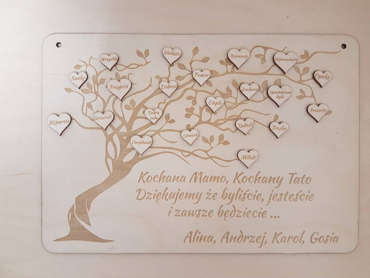 Każda personalizowana tabliczka z drzewem jest wyjątkowa i stworzona z najwyższą precyzją, by dostarczyć niezapomnianą radość obdarowanym osobom.