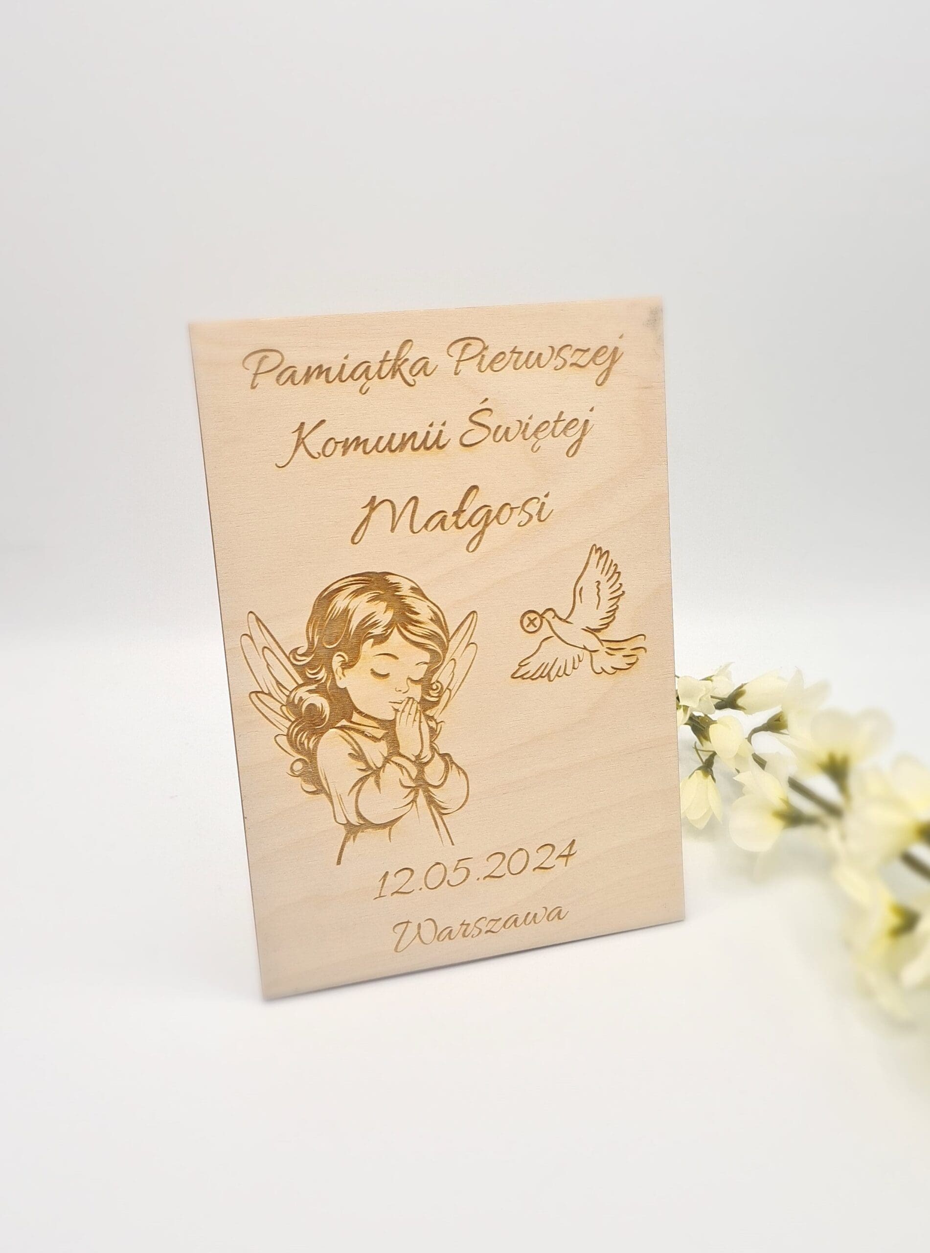 Personalizowana Pamiątka Pierwszej Komunii Świętej Tabliczka drewniana z grawerem