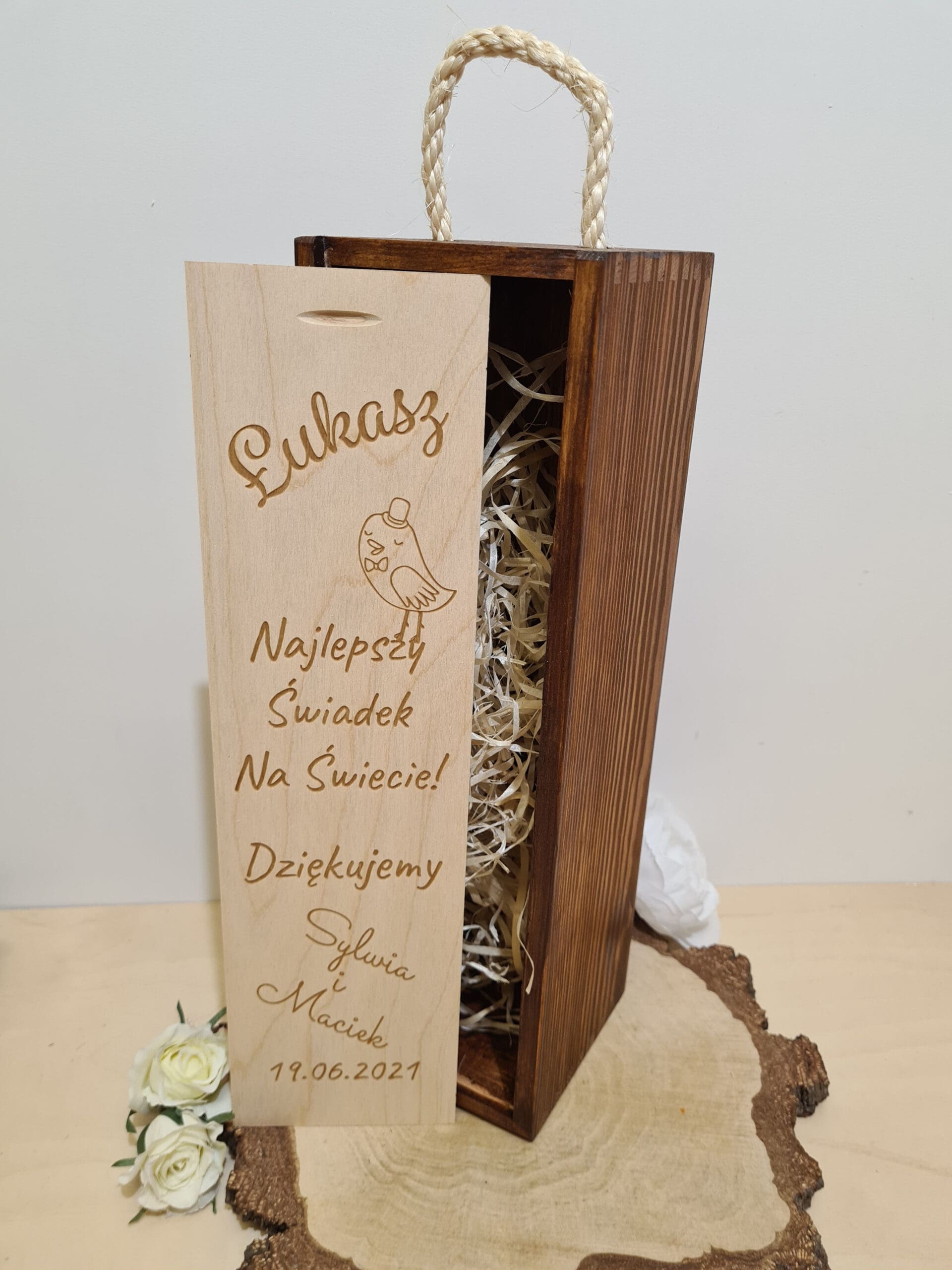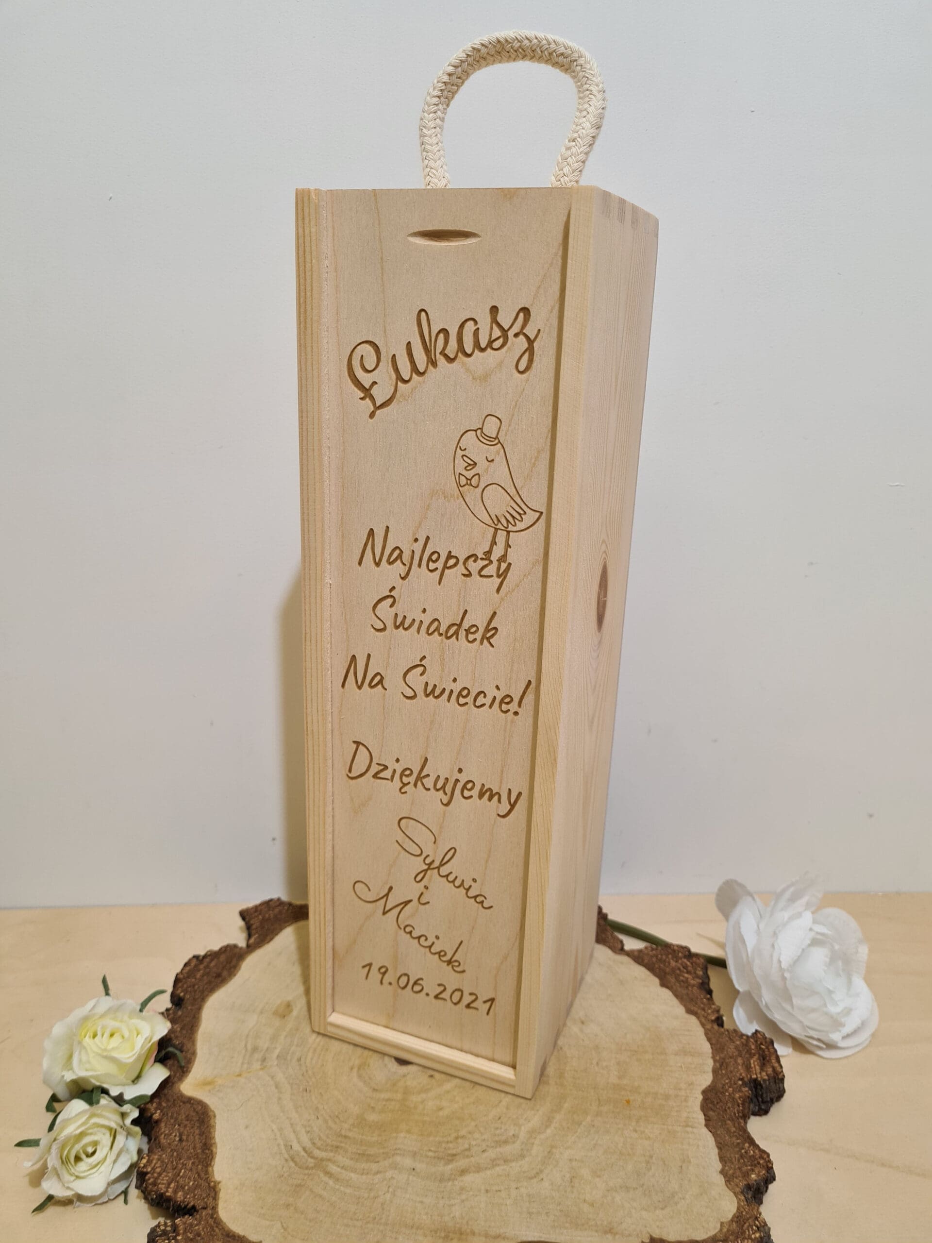Personalizowana skrzynka na alkohol – prezent dla świadka lub świadkowej