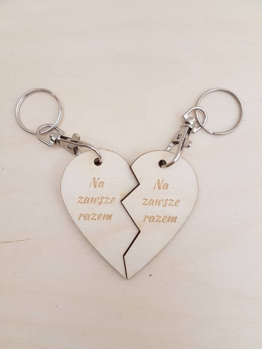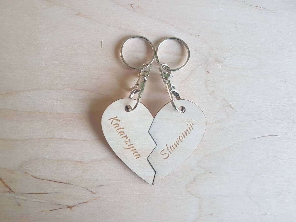 Dwa breloczki w kształcie przeciętego serca z wygrawerowanymi imionami oraz tekstem będą wspaniałym prezentem dla zakochanych. Nasz produkt z grawerem podarowany na walentynki lub jako dodatek do prezentu ślubnego będzie miłym gadżetem o osobistym charakterze.