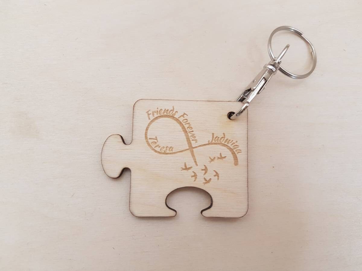 Breloczki w kształcie puzzli z wygrawerowanym symbolem nieskończoności oraz tekstem będą wspaniałym prezentem dla przyjaciela, rodzeństwa lub zakochanych. Nasz produkt z grawerem przyczepiony do kluczy będzie niepowtarzalnym gadżetem o osobistym charakterze.