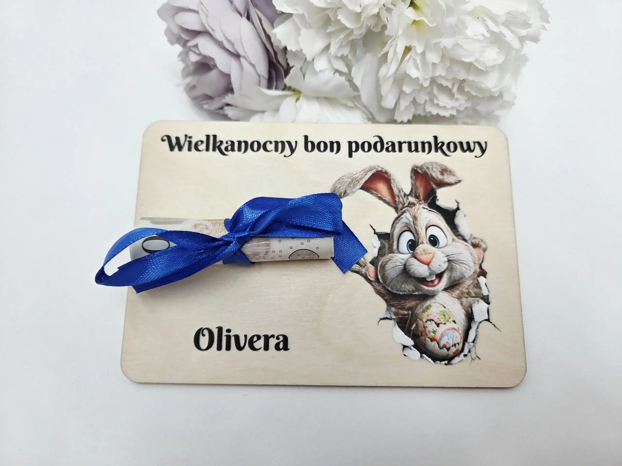 Personalizowany bon wielkanocny – drewniany prezent na pieniądze