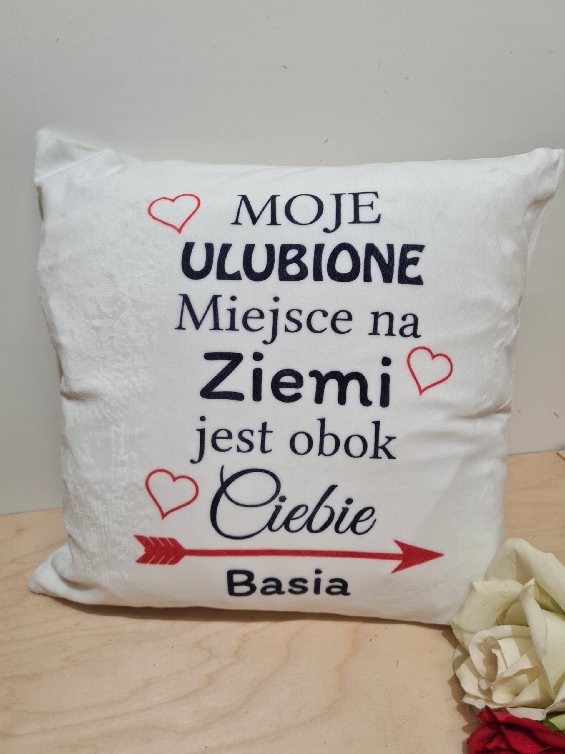 Poduszka z nadrukiem- Moje ulubione miejsce na ziemi jest obok Ciebie