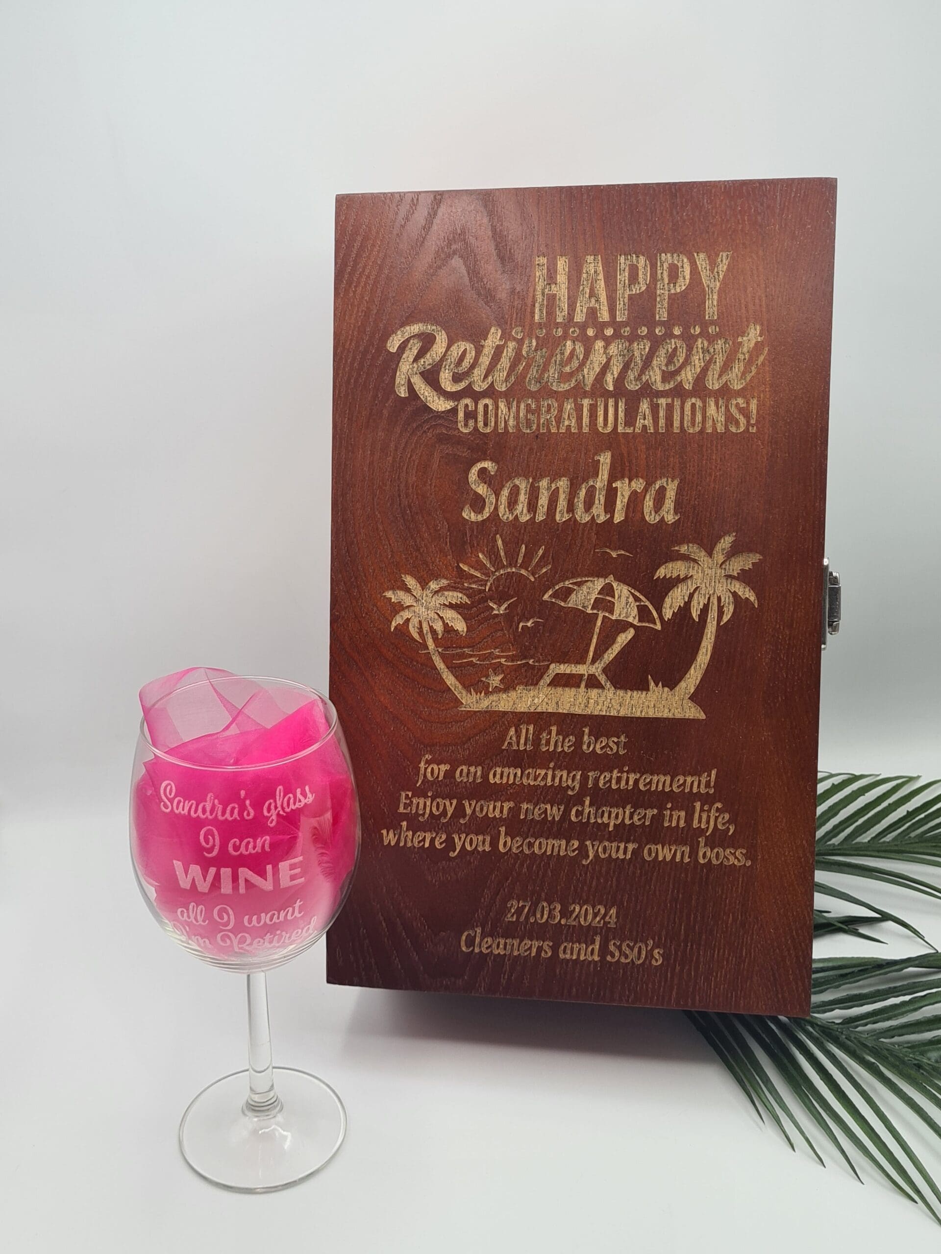 Szukasz niezapomnianego prezentu z okazji przejścia na emeryturę? Ta personalizowana, drewniana skrzynka na alkohol w zestawie z kieliszkiem to idealny sposób, aby wyrazić uznanie dla zasłużonego emeryta. Wykonaliśmy tę skrzynkę z wysokiej jakości drewna, dzięki czemu jest nie tylko piękna, ale także praktyczna. Możliwość dodania osobistego grawerunku sprawia, że prezent staje się jeszcze bardziej wyjątkowy i sentymentalny.