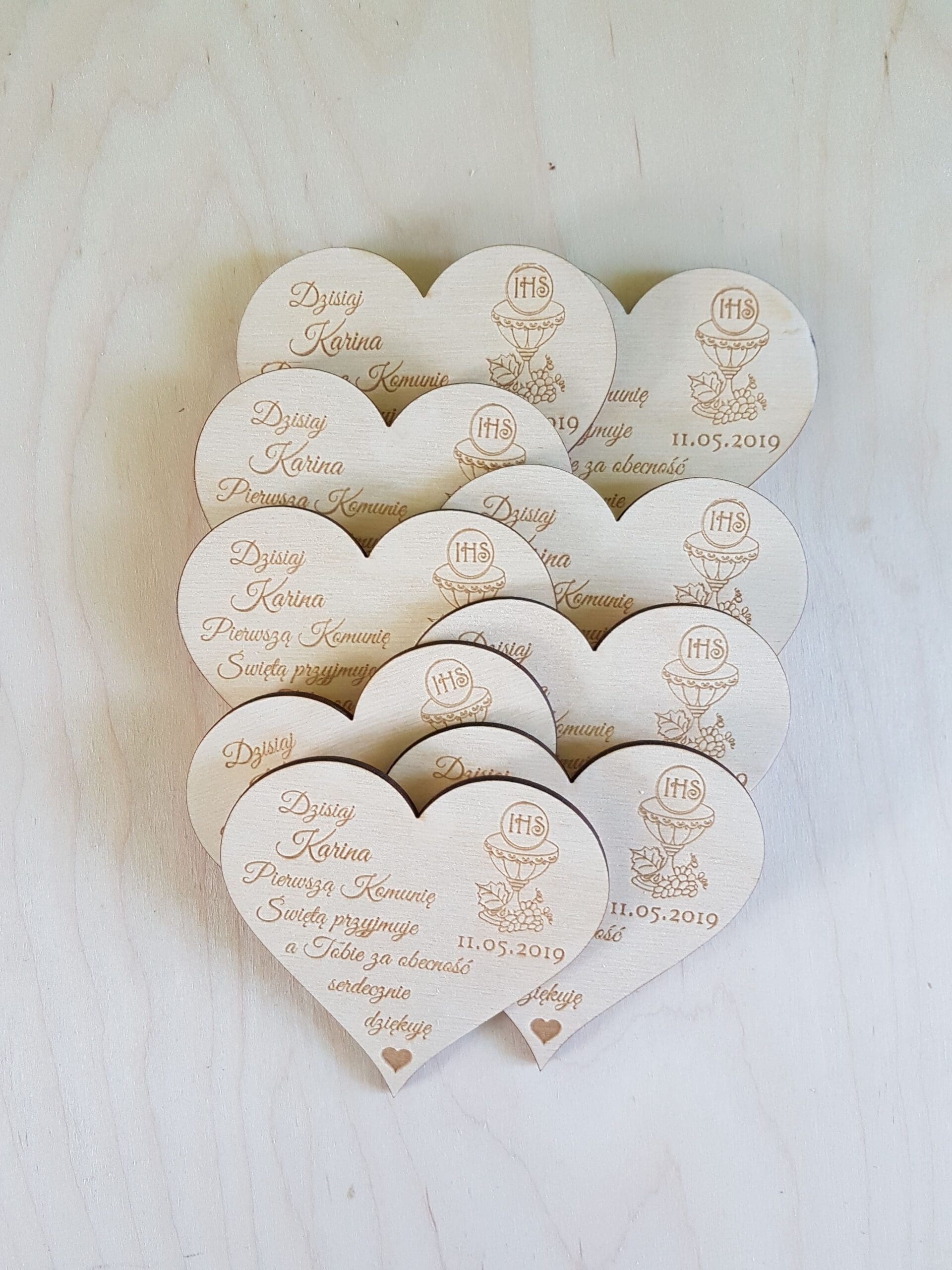 Drewniane podziękowania dla gości – magnes serce na Komunię Świętą
