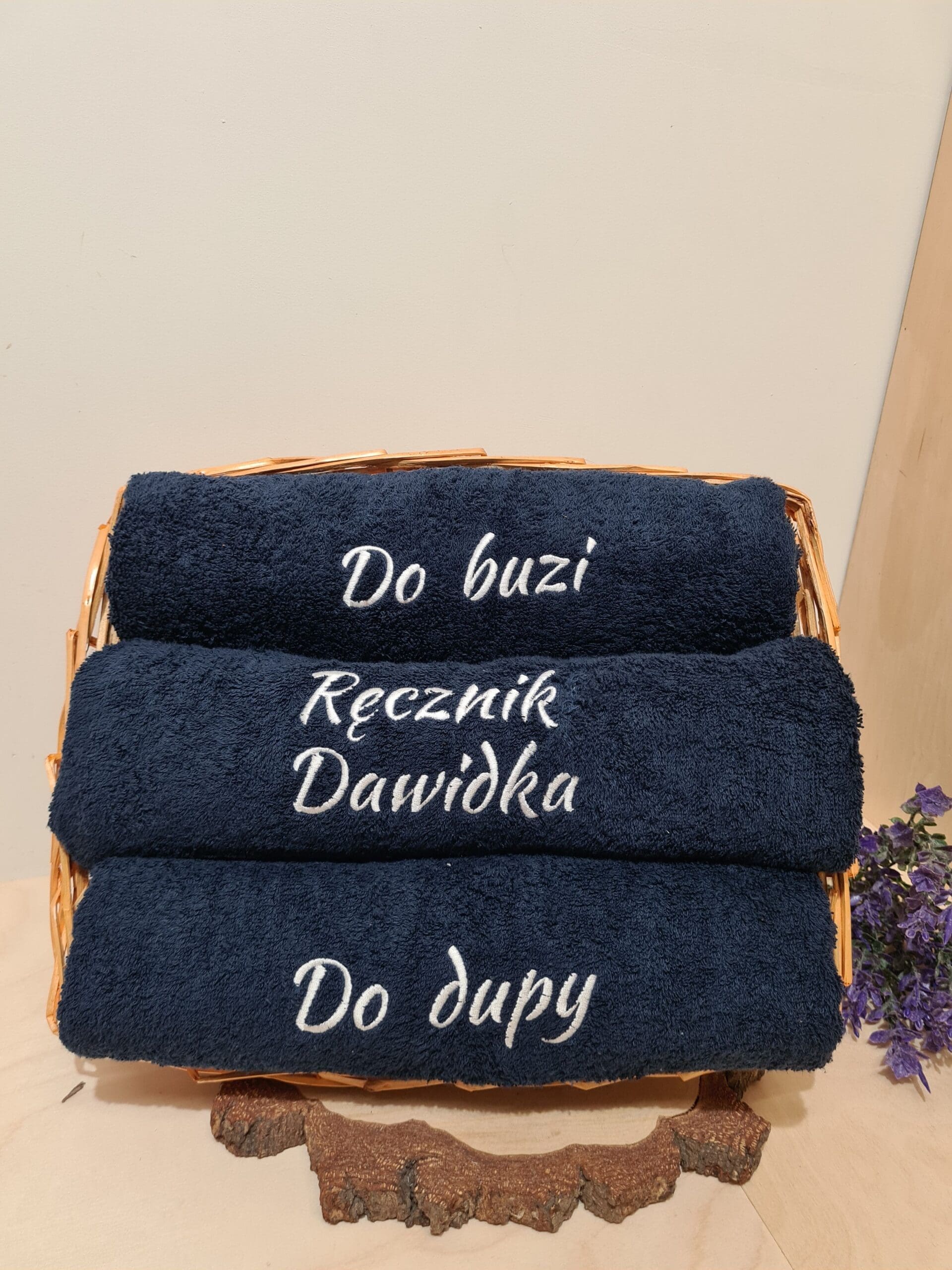 Zestaw 3 Ręczników z Haftem „Do Buzi, Do Dupy, Ręcznik…” – Śmieszny i Praktyczny Prezent