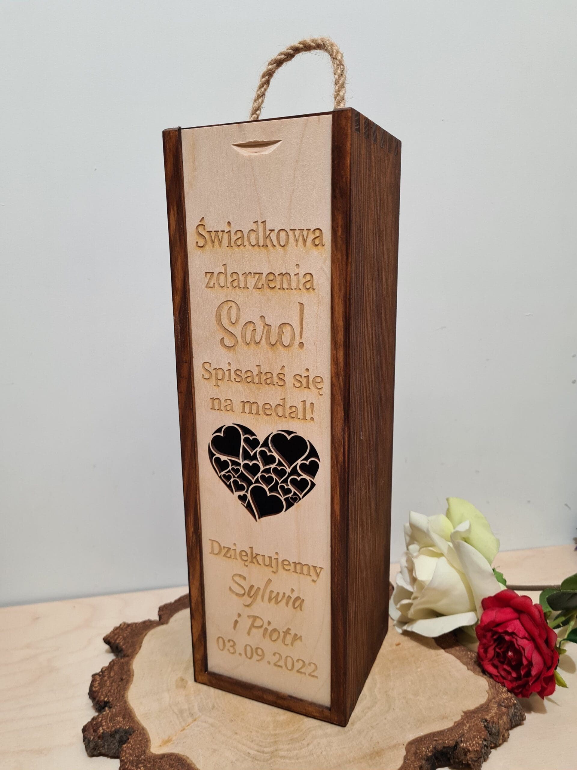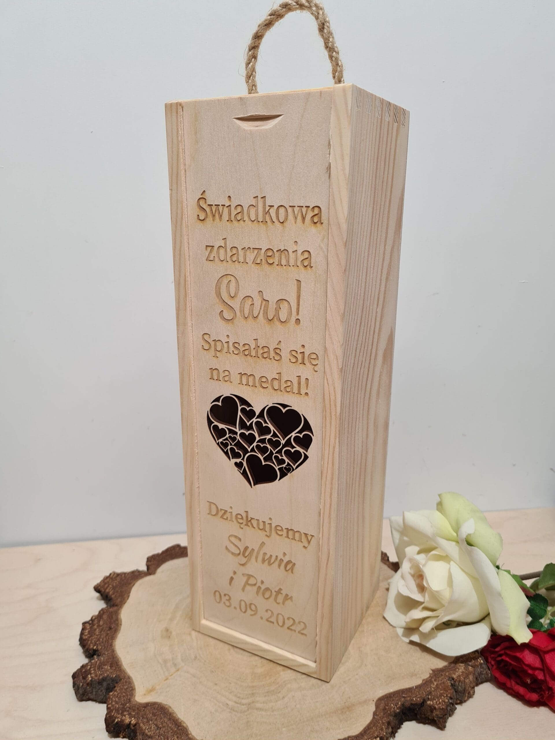 Twoja świadkowa była niezastąpiona podczas przygotowań do ślubu i zasługuje na wyjątkowy prezent? Nasza personalizowana skrzynka na alkohol „Spisałaś się na medal” to nie tylko piękny, ale i praktyczny prezent dla świadkowej, który z pewnością wywoła uśmiech na jej twarzy.