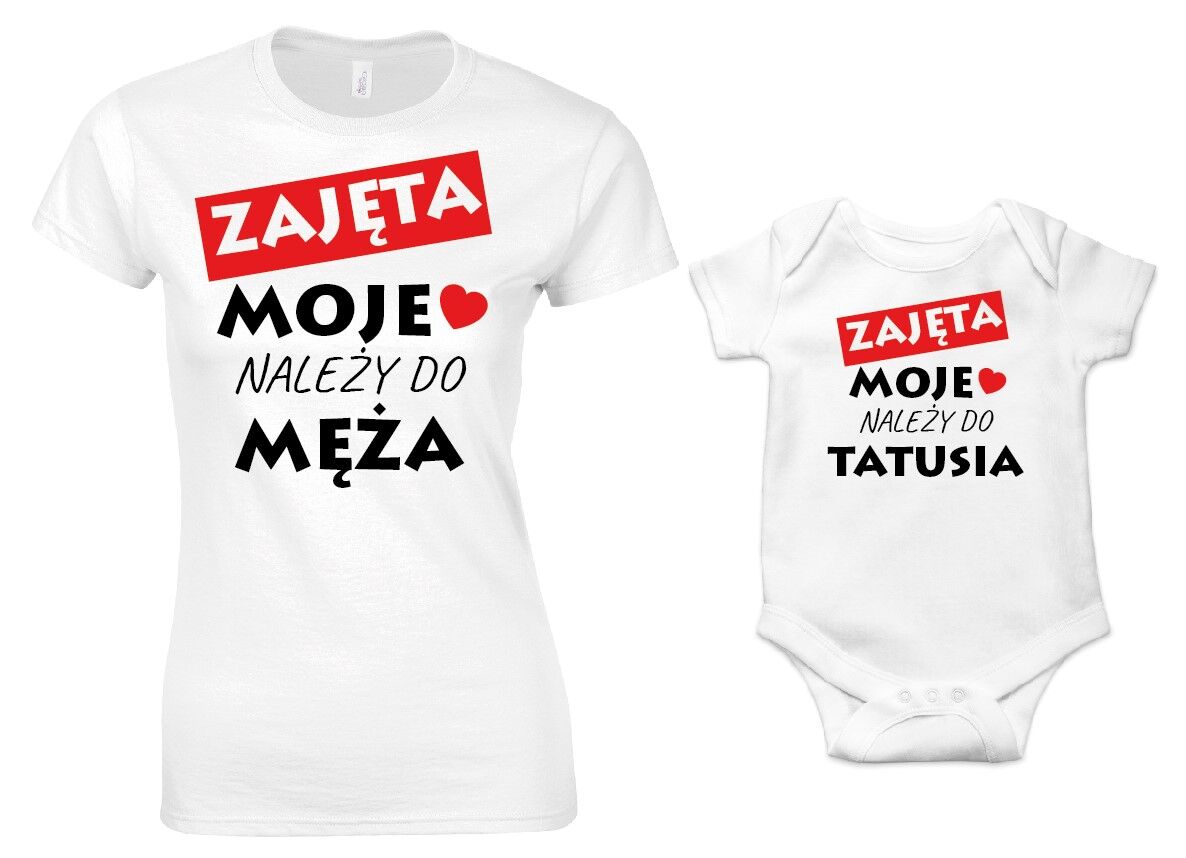 Szukasz wyjątkowego prezentu na Walentynki, który zachwyci Twoją żonę i córkę? Zestaw koszulki dla mamy oraz body lub koszulka dla córki to idealne połączenie miłości i humoru! Jest to idealny Prezent dla żony i córki na walentynki. Oryginalny nadruk „Zajęta – Moje Serce Należy Do Męża” dla żony oraz „Zajęta – Moje Serce Należy Do Tatusia” dla córki podkreśli Waszą wyjątkową więź i sprawi, że każdy spojrzy na Was z uśmiechem.