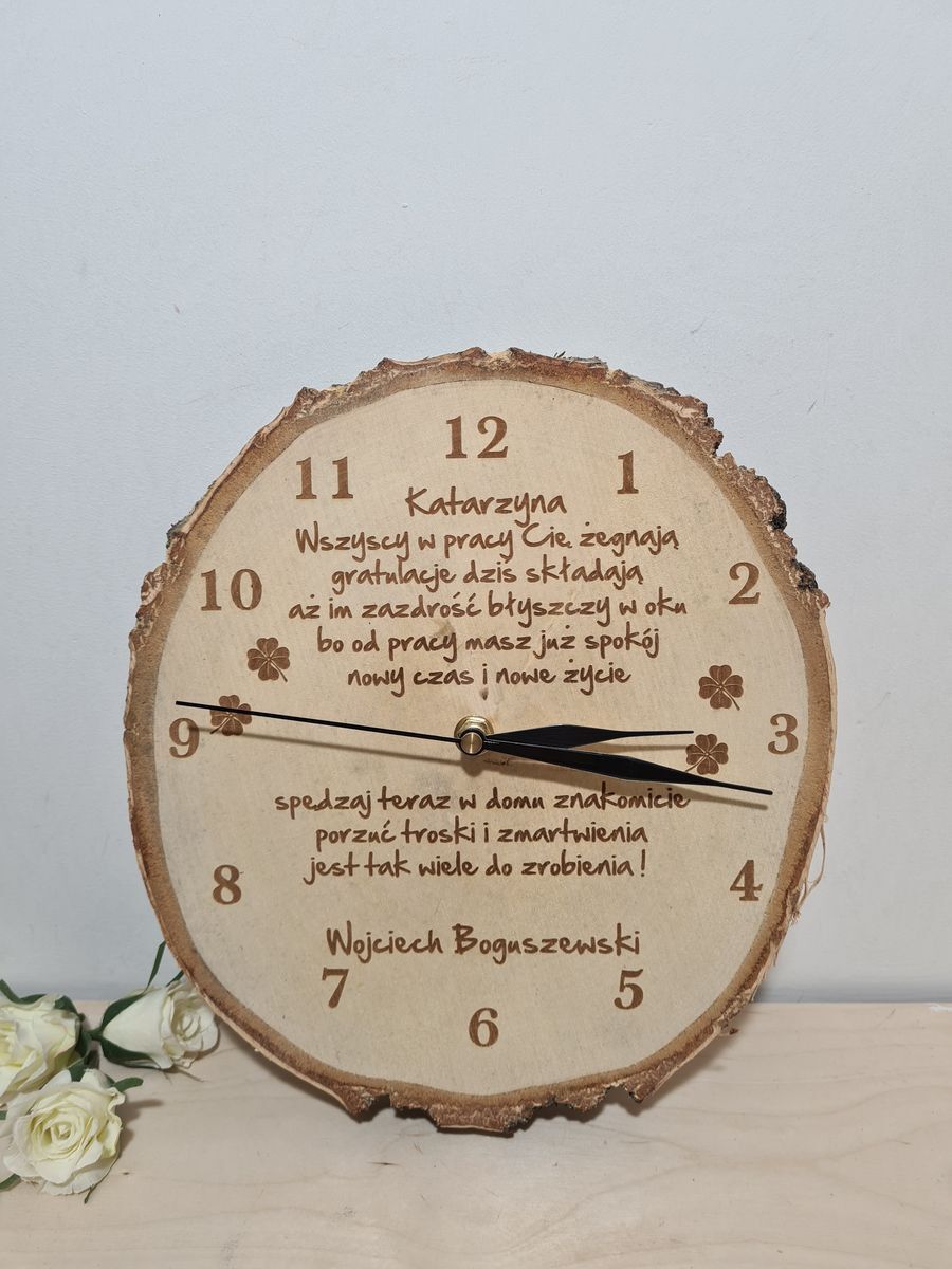 Drewniany Zegar Ścienny na Płacie Brzozy | Wyjątkowy Prezent na Pożegnanie z Pracy
