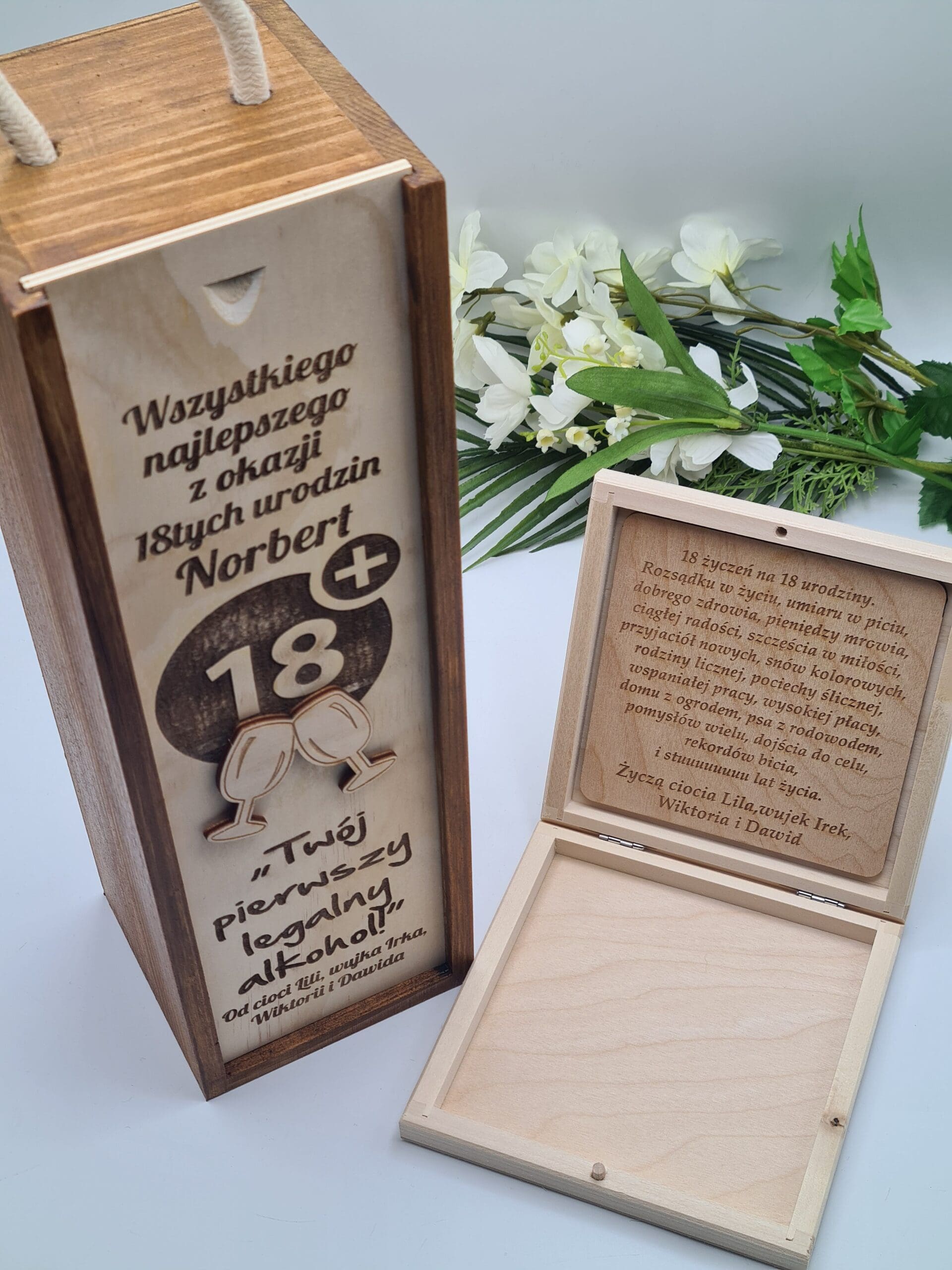 Zestaw Prezentów na 18 Urodziny: Personalizowana Skrzynka na Alkohol i Pudełko na Pieniądze – Wyjątkowy Start w Dorosłość
