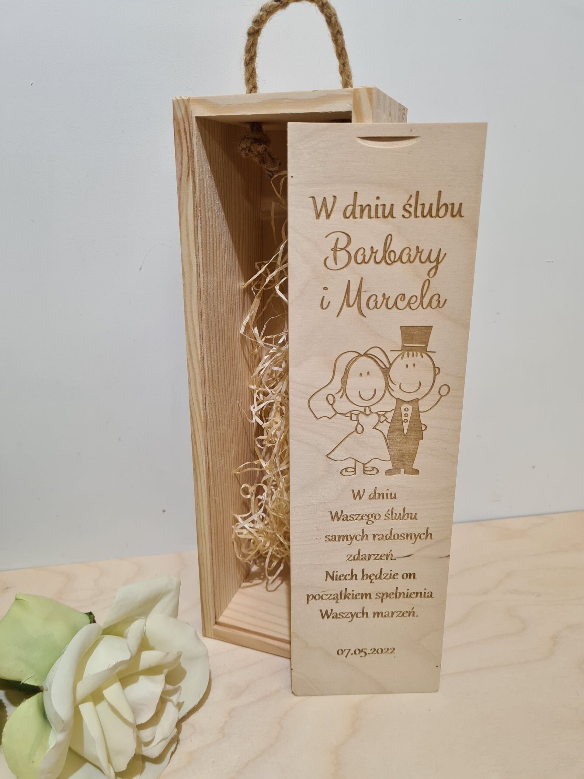 Skrzynka na Wino/Alkohol z Grawerem – Praktyczny i Elegancki Prezent na Ślub „W Dniu Ślubu”