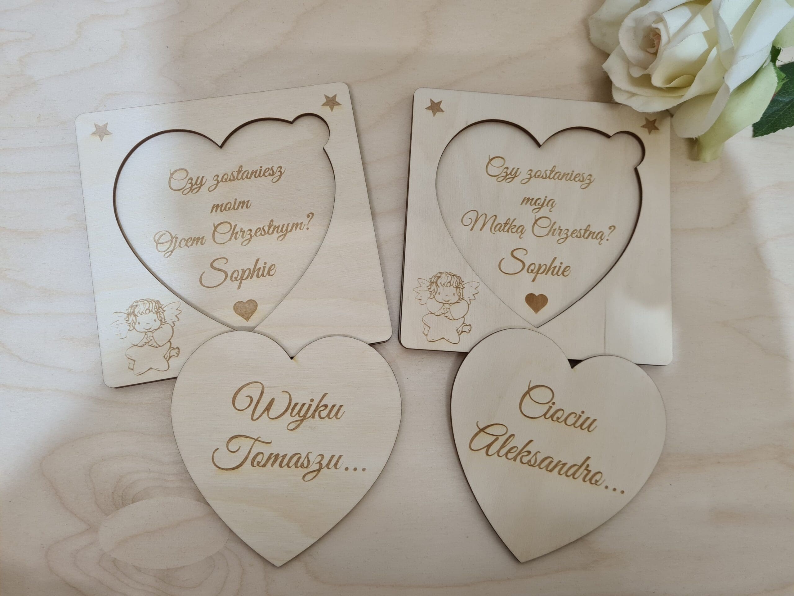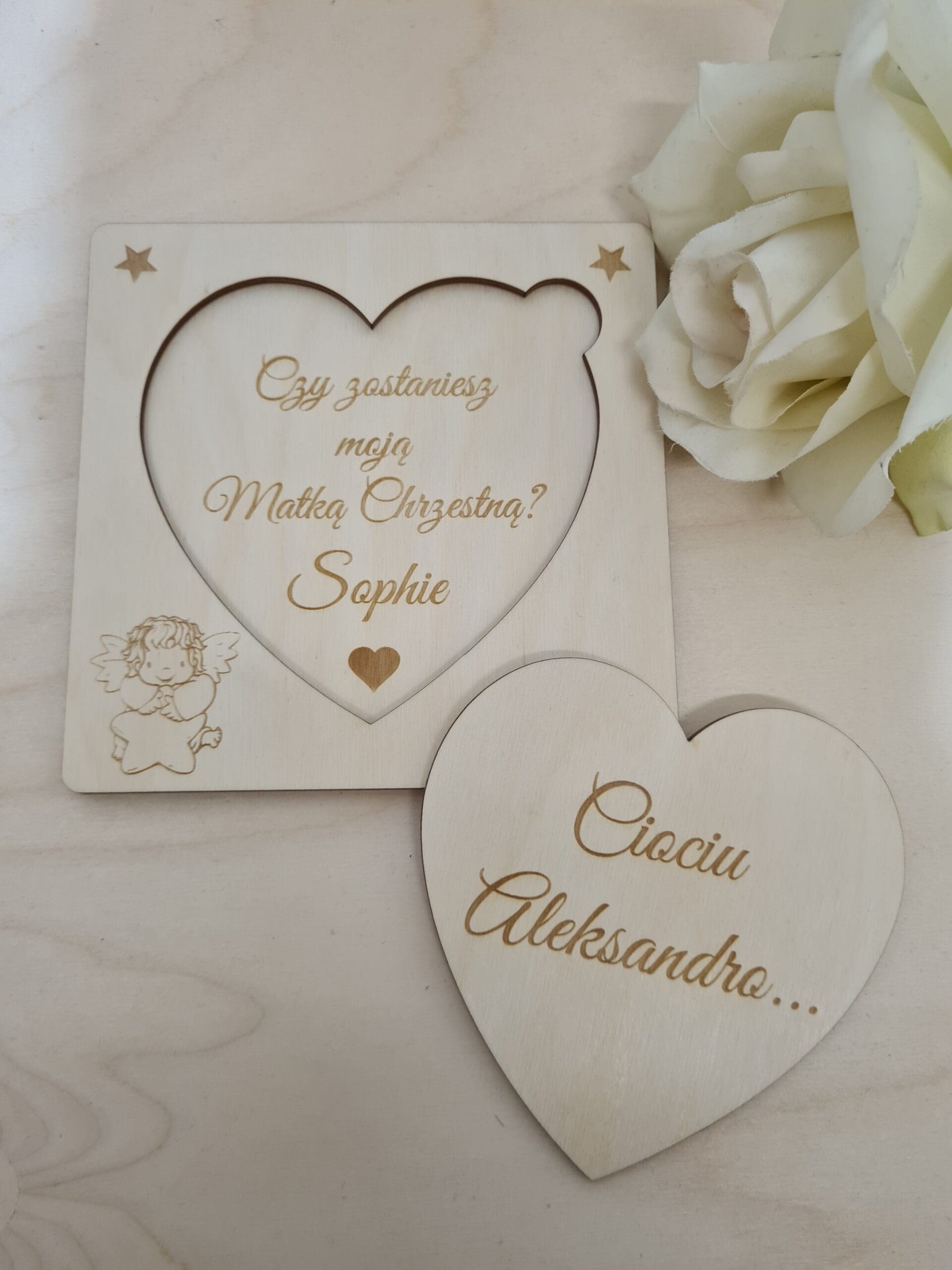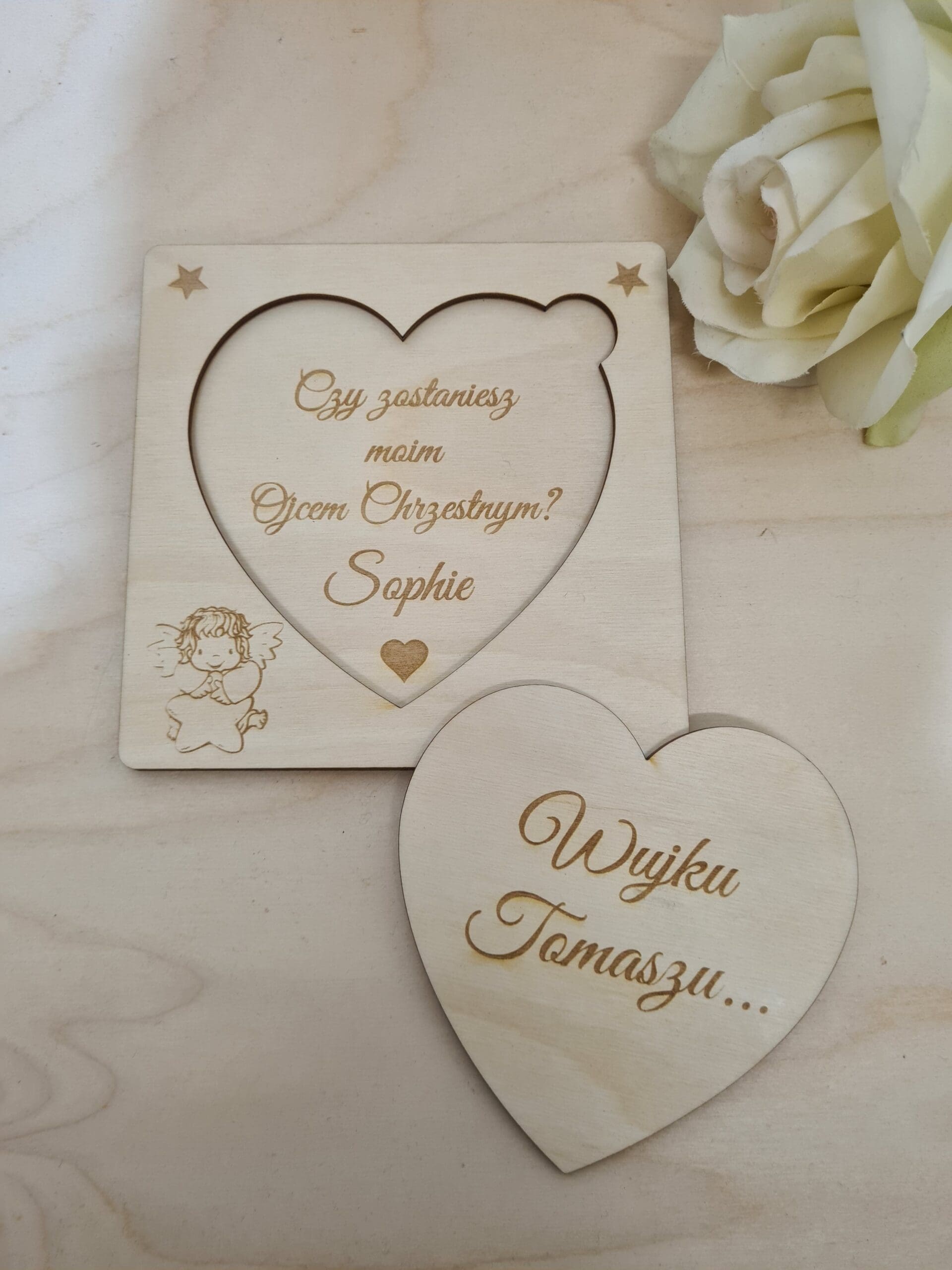 Prośba O Bycie Matką Chrzestną / Ojcem Chrzestnym- Drewniane Serce z Grawerem – Idealny Prezent na Chrzest