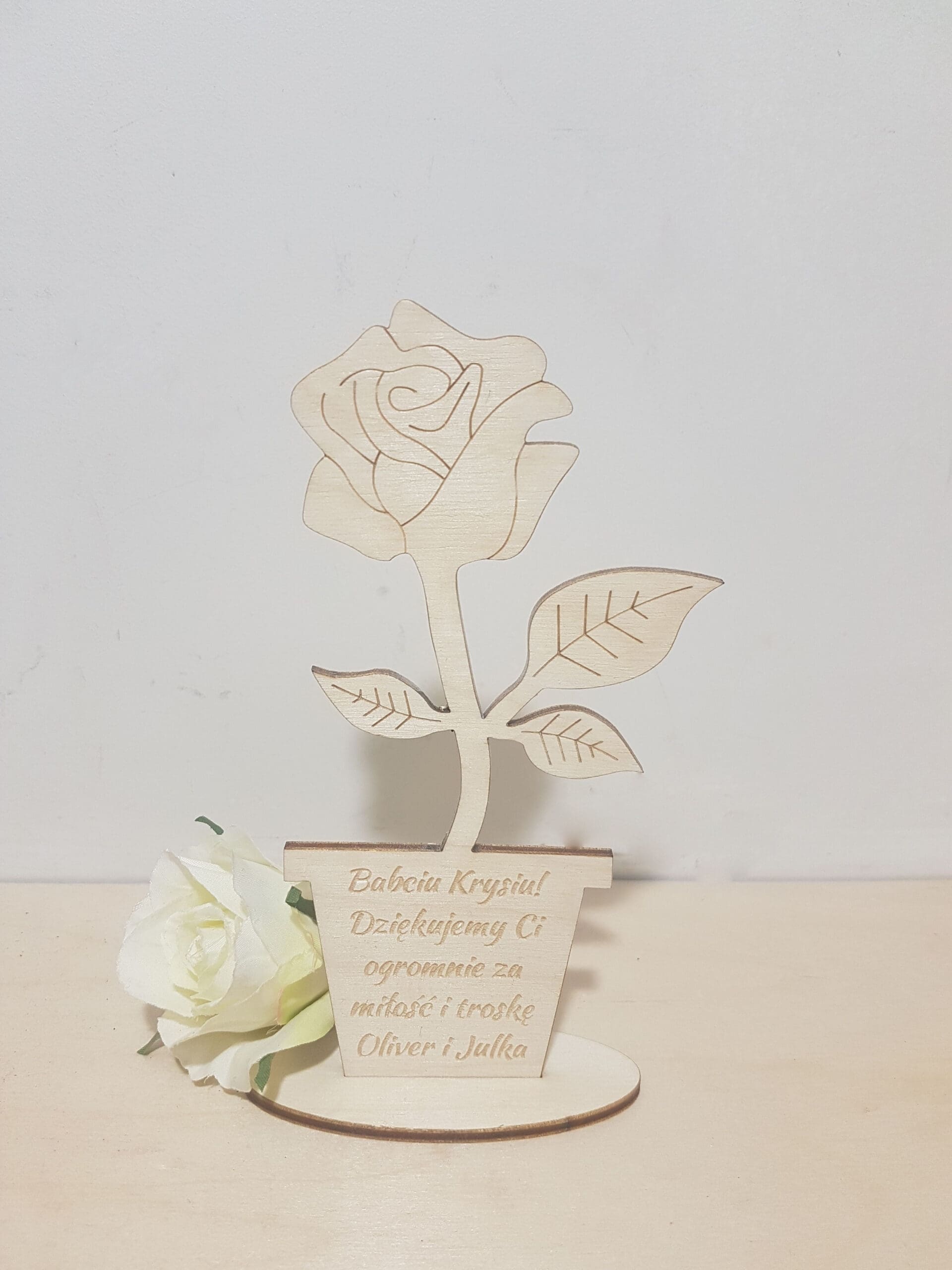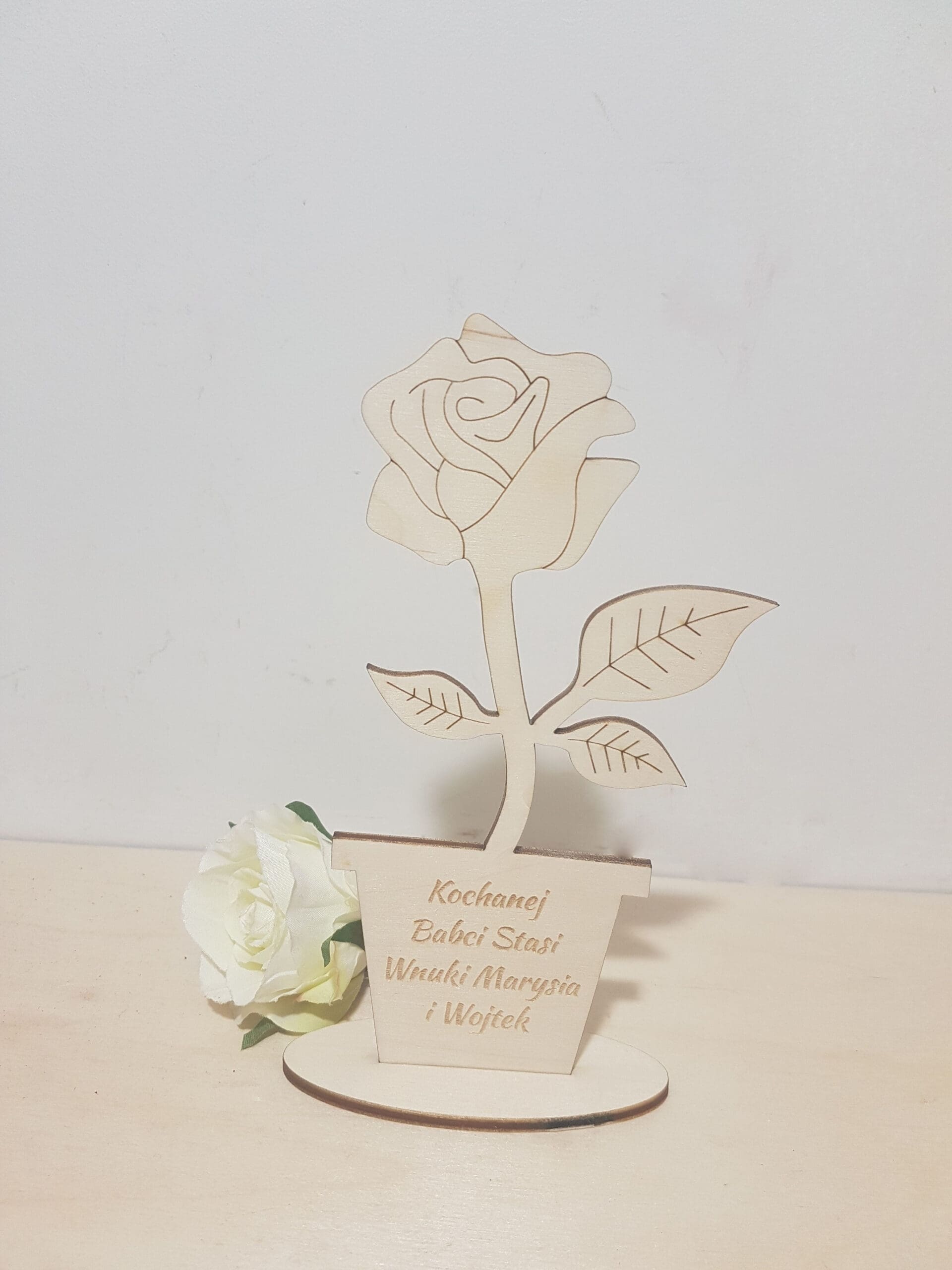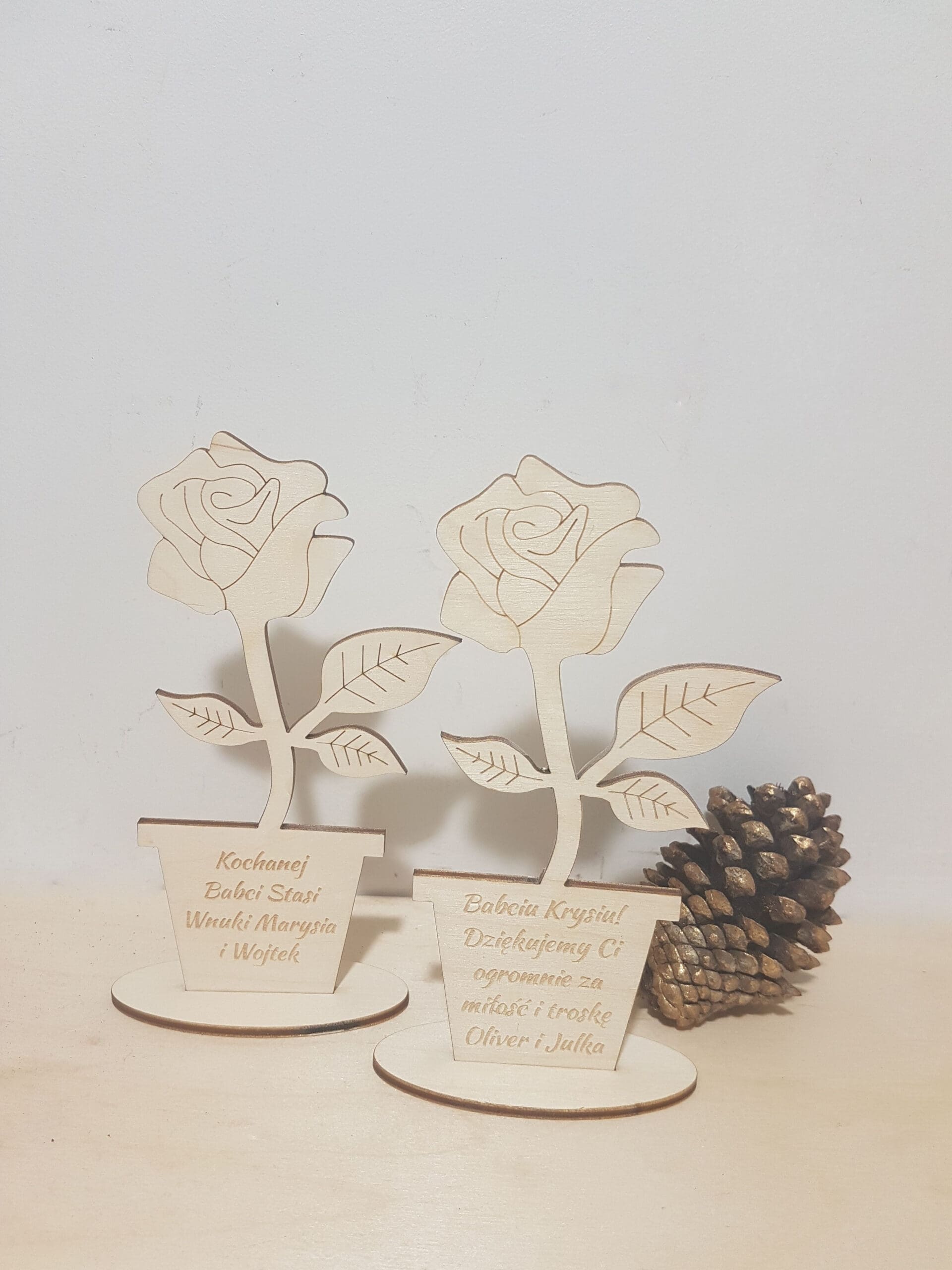 Piękny grawerowany kwiat jest niepowtarzalnym upominkiem dla babci oraz dla dziadka.