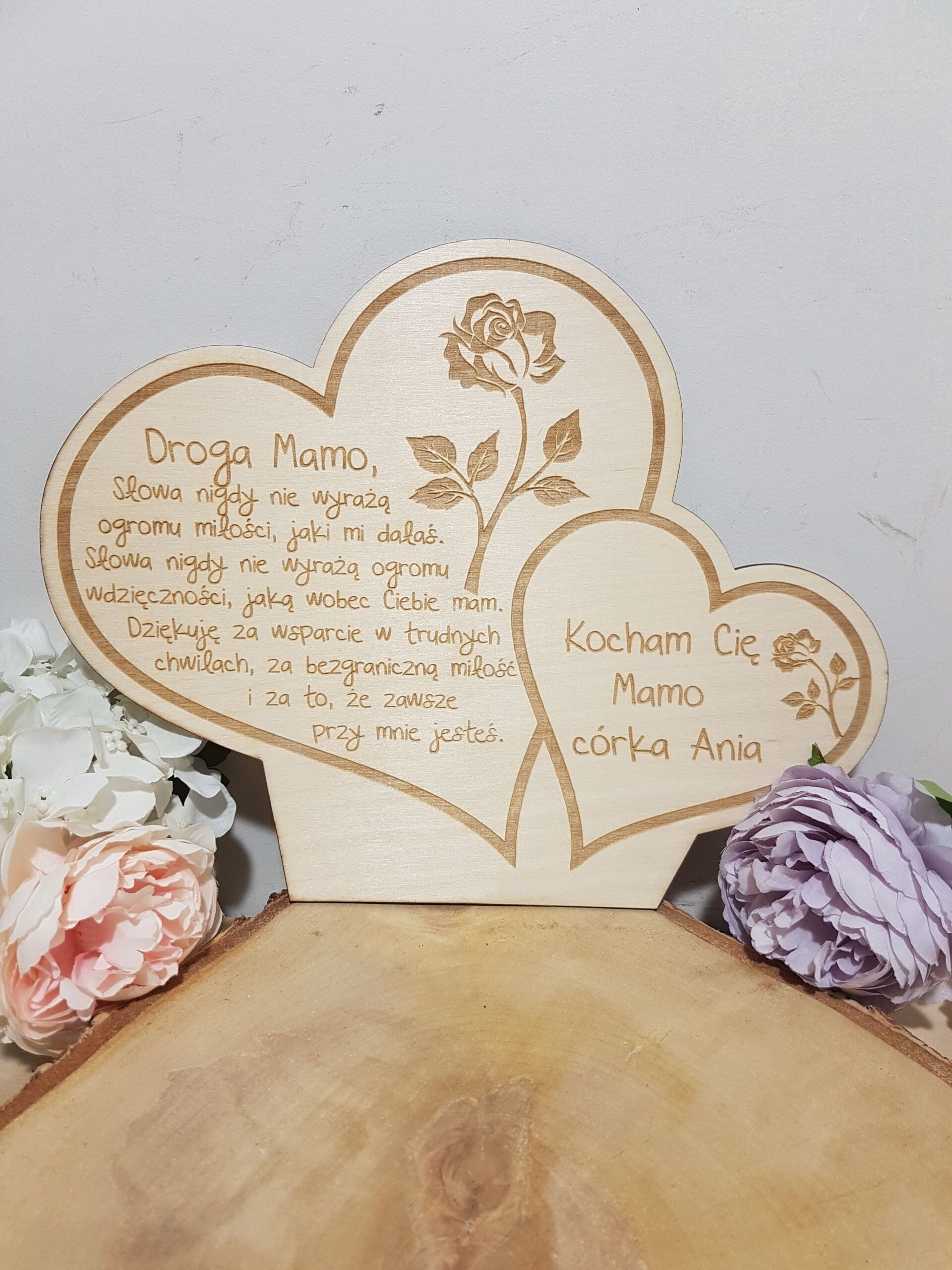 Duże grawerowane serce świetnie sprawdzi się jako prezent dla Mamy. Idealne na urodziny, dzień matki, Święta Bożego Narodzenia lub po prostu bez okazji.