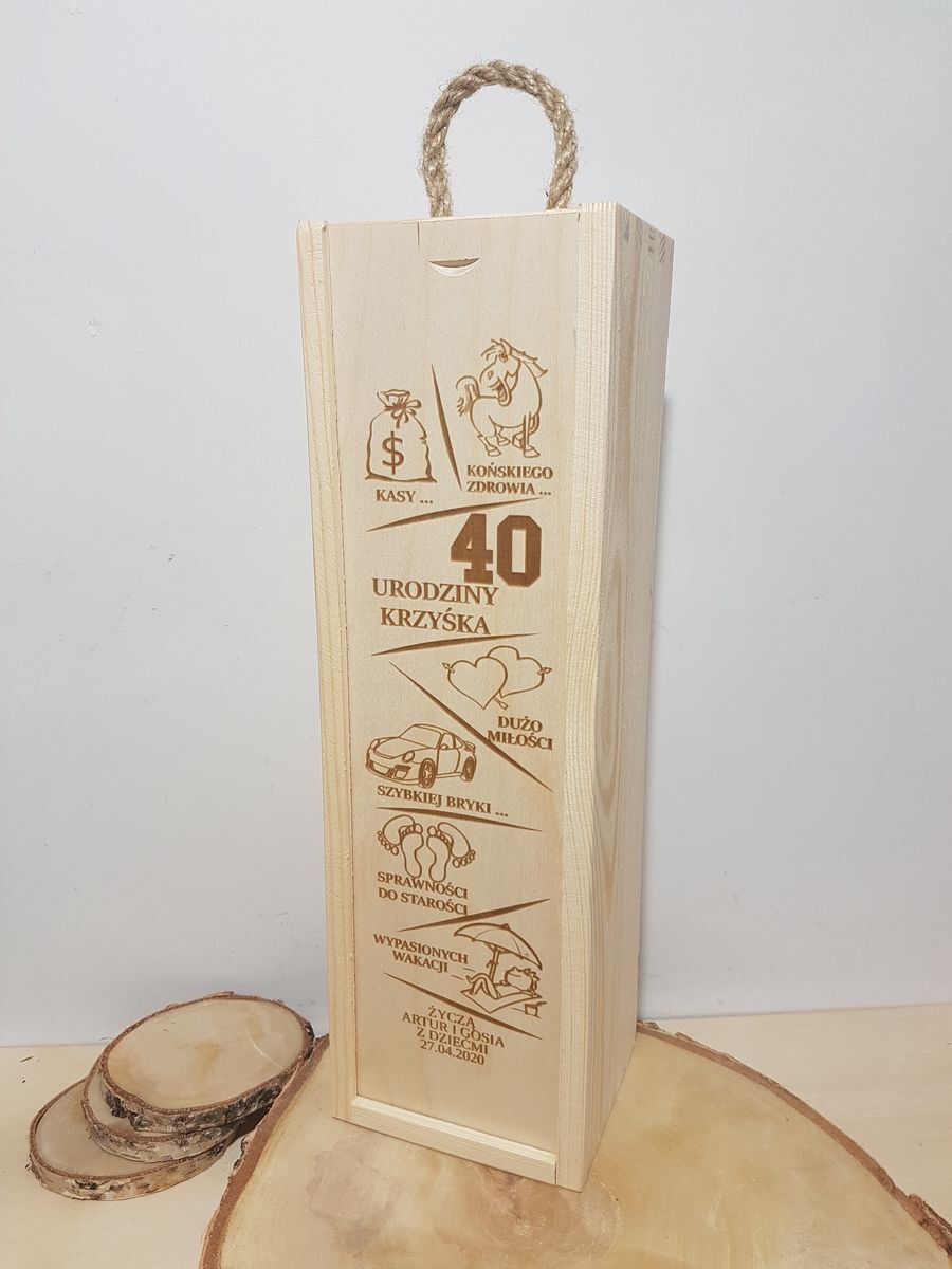 Szukasz wyjątkowego i śmiesznego prezentu na urodziny? Nasza personalizowana skrzynka na alkohol „Śmieszne Życzenia” to idealny wybór! Wykonana z wysokiej jakości drewna, pomieści ulubiony trunek solenizanta, a zabawny grawer z życzeniami sprawi, że będzie to pamiątka na lata. To nie tylko praktyczny prezent, ale także gwarancja uśmiechu i dobrej zabawy.