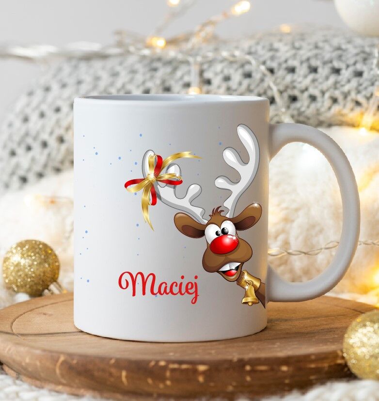 Świąteczny kubek z imieniem – Renifer