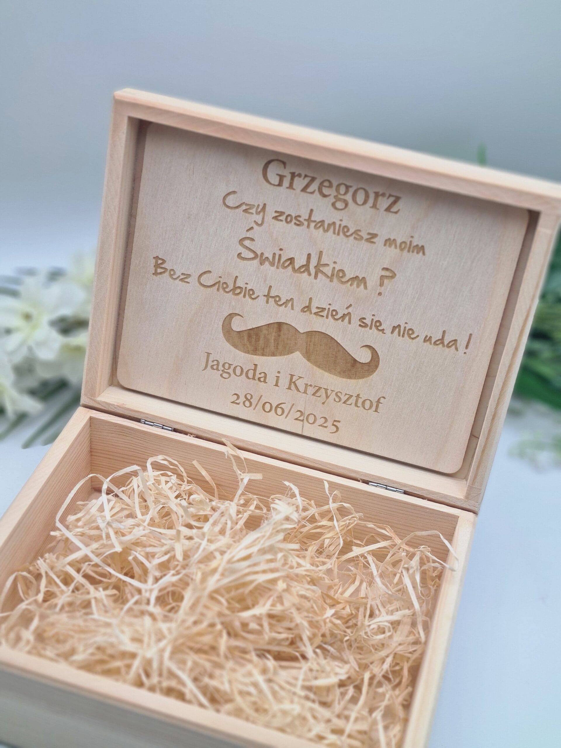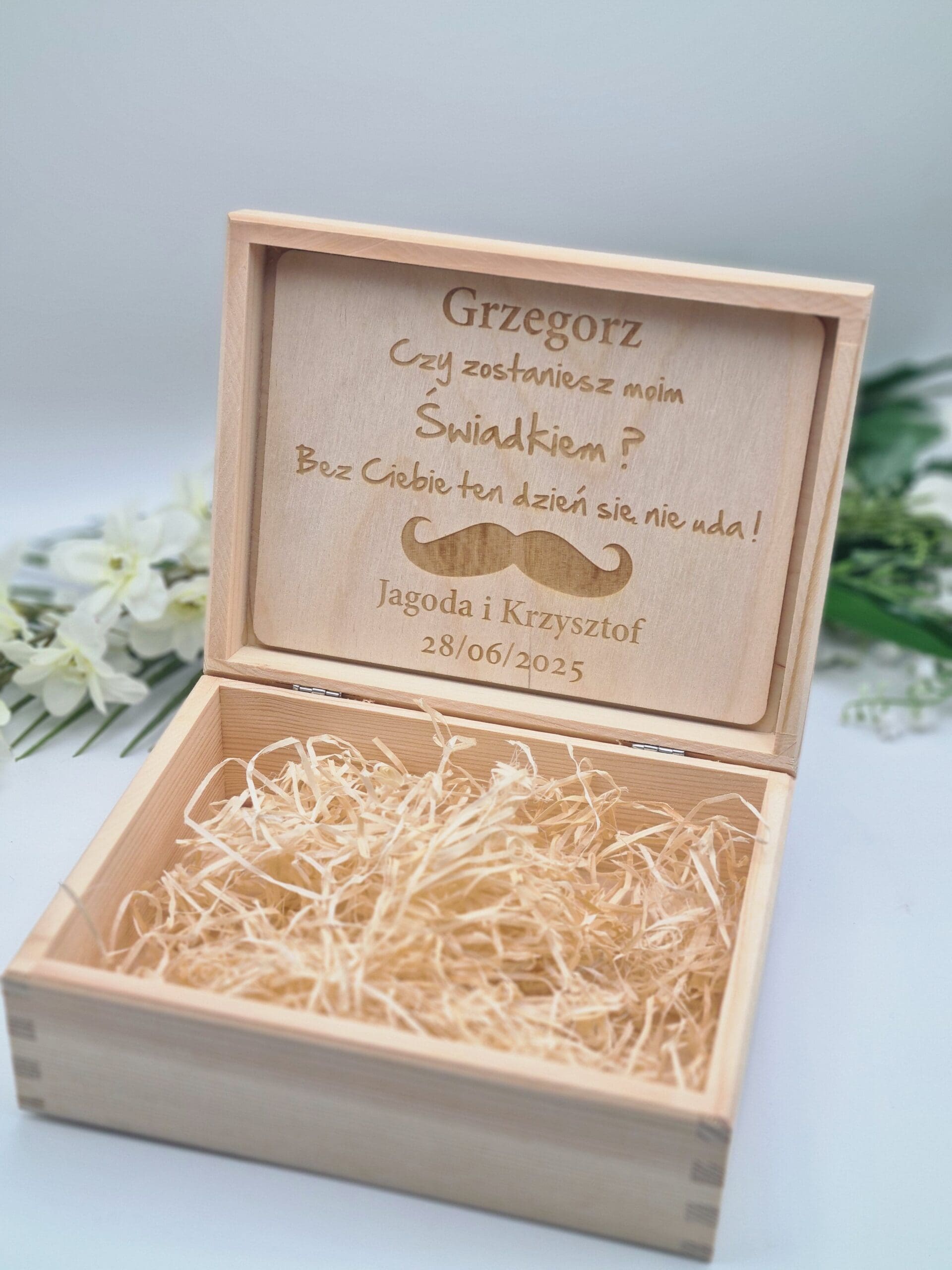 Nasza personalizowana skrzynka to idealny prezent dla przyszłego świadka.
