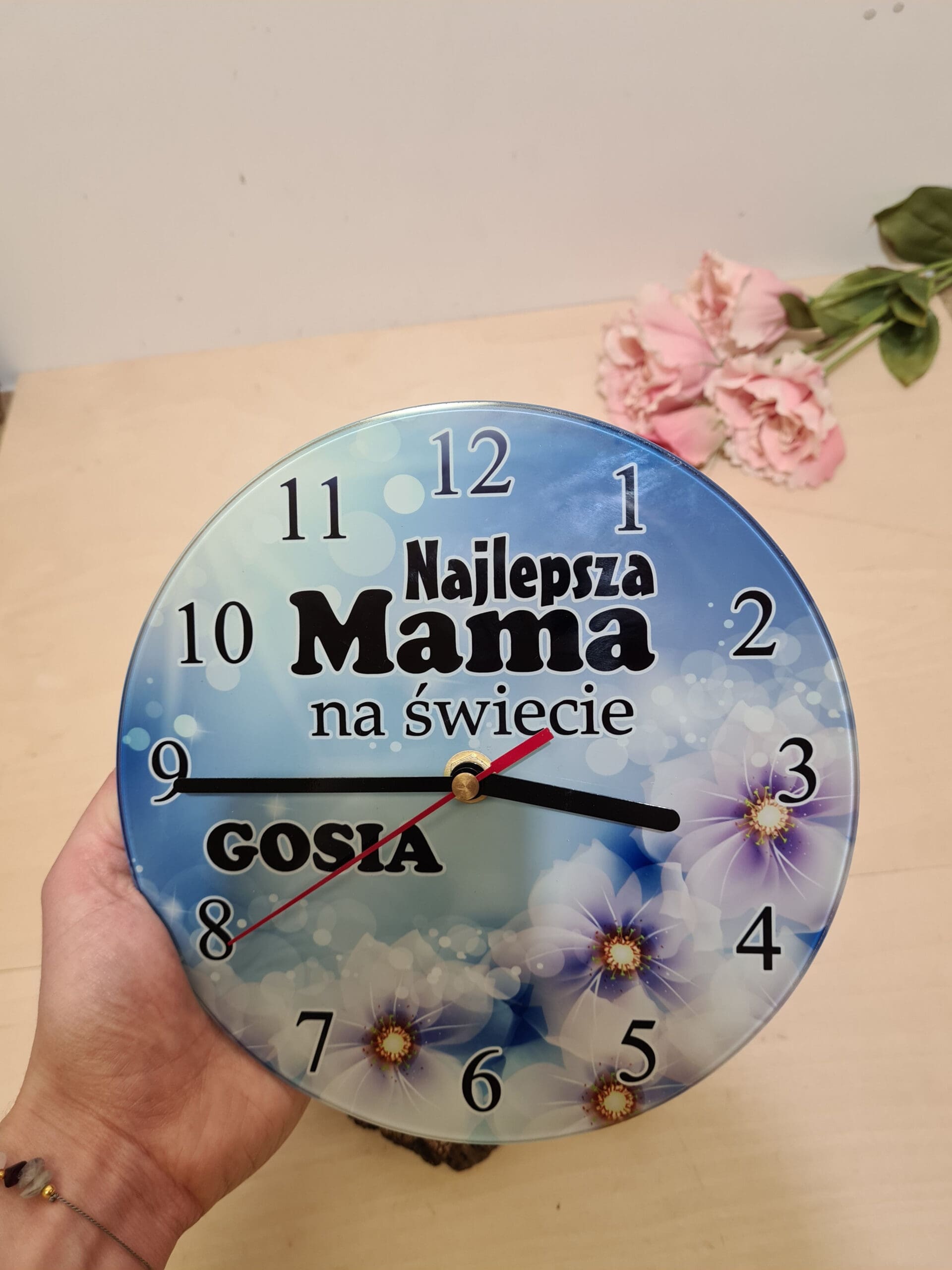 Szklany zegar ścienny świetnie sprawdzi się jako prezent z okazji dnia matki oraz na urodziny.