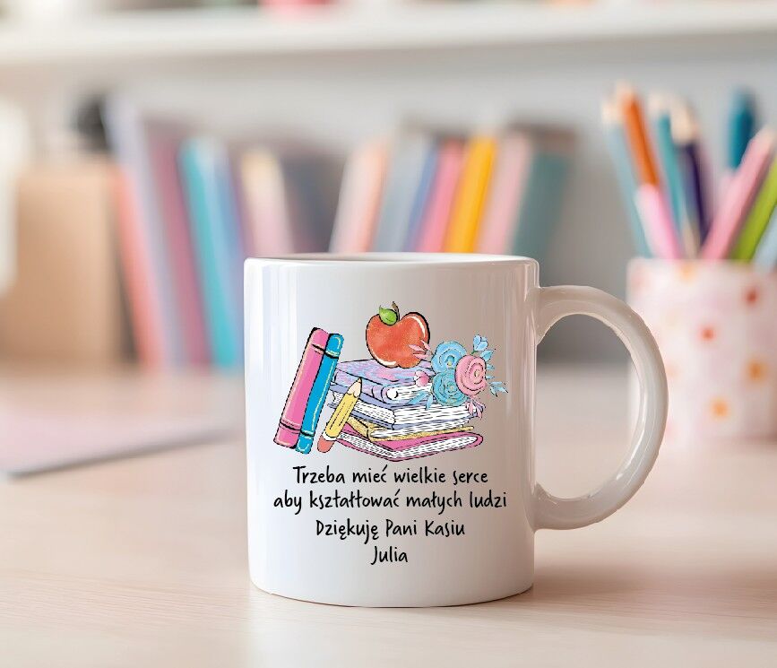 Szukasz idealnego prezentu, który wyrazi Twoją wdzięczność dla nauczyciela? Ten ceramiczny kubek z cytatem „Trzeba mieć wielkie serce aby kształtować małych ludzi” to nie tylko praktyczny upominek, ale przede wszystkim piękny symbol uznania dla jego ciężkiej pracy i poświęcenia. Wykonany z wysokiej jakości ceramiki, kubek jest nie tylko piękny, ale również praktyczny – idealny do porannej kawy lub herbaty.