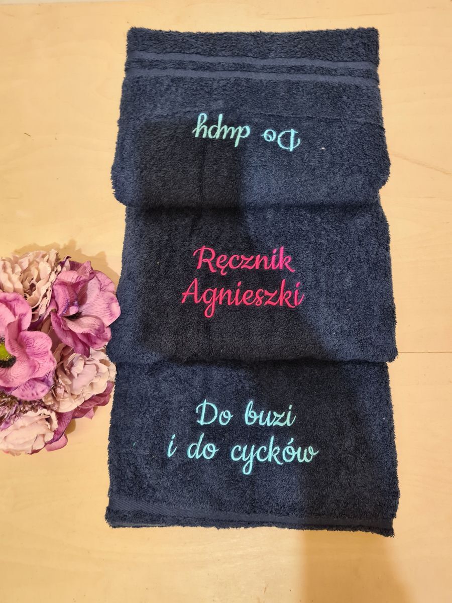 Szukasz oryginalnego i zabawnego prezentu dla dziewczyny, żony lub przyjaciółki? Nasz ręcznik kąpielowy z trzema pikantnymi haftami „Do buzi i do cucków, Do dupy, Ręcznik…” to gwarancja śmiechu i niezapomnianych chwil. Wykonany z miękkiej, chłonnej bawełny, zapewni komfort po kąpieli, a zabawne napisy rozgrzeją atmosferę. Idealny na urodziny, wieczór panieński, rocznicę lub po prostu bez okazji, żeby pokazać, że masz poczucie humoru!