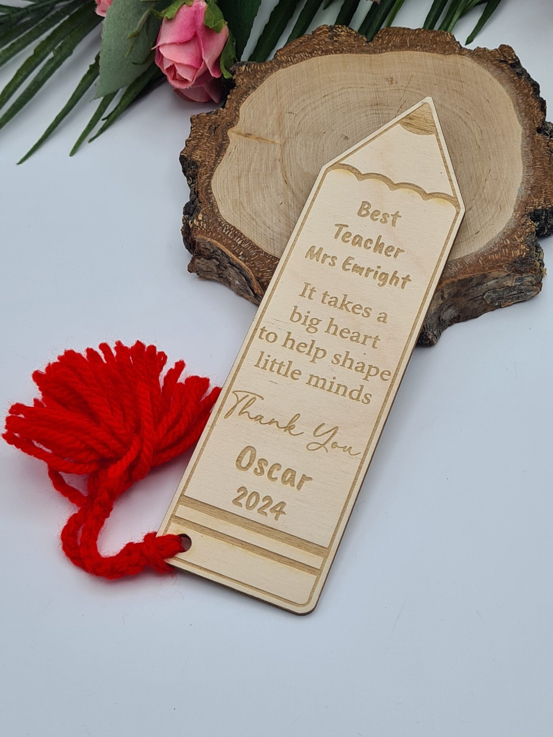 Wykonana z wysokiej jakości materiałów, ta elegancka zakładka będzie nie tylko praktycznym dodatkiem do każdej książki, ale przede wszystkim stanie się wzruszającą pamiątką, która będzie towarzyszyć nauczycielowi przez wiele lat.