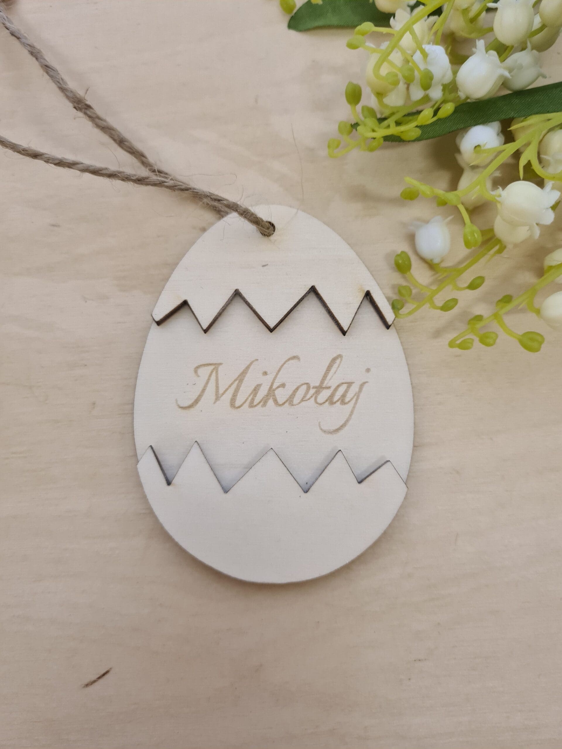 Drewniana Zawieszka z imieniem na koszyczek wielkanocny „Jajko”