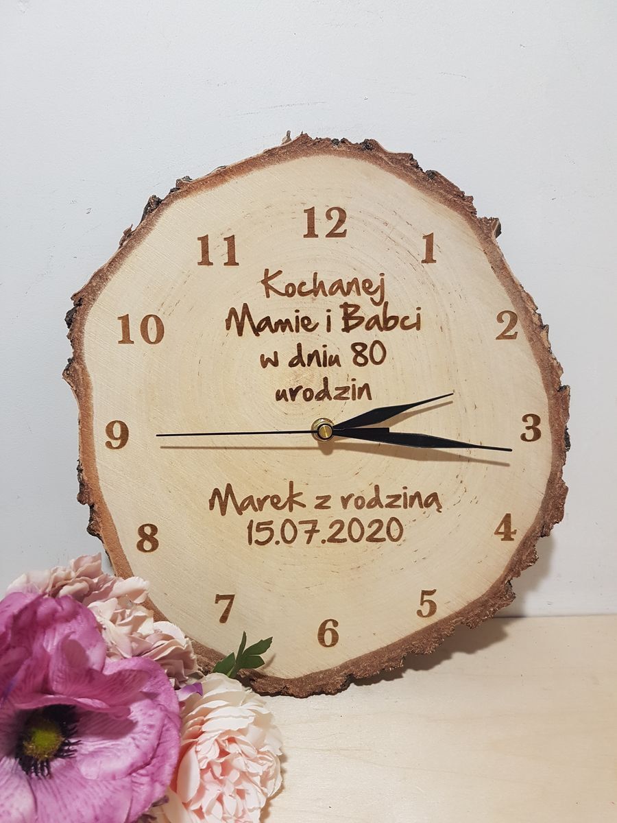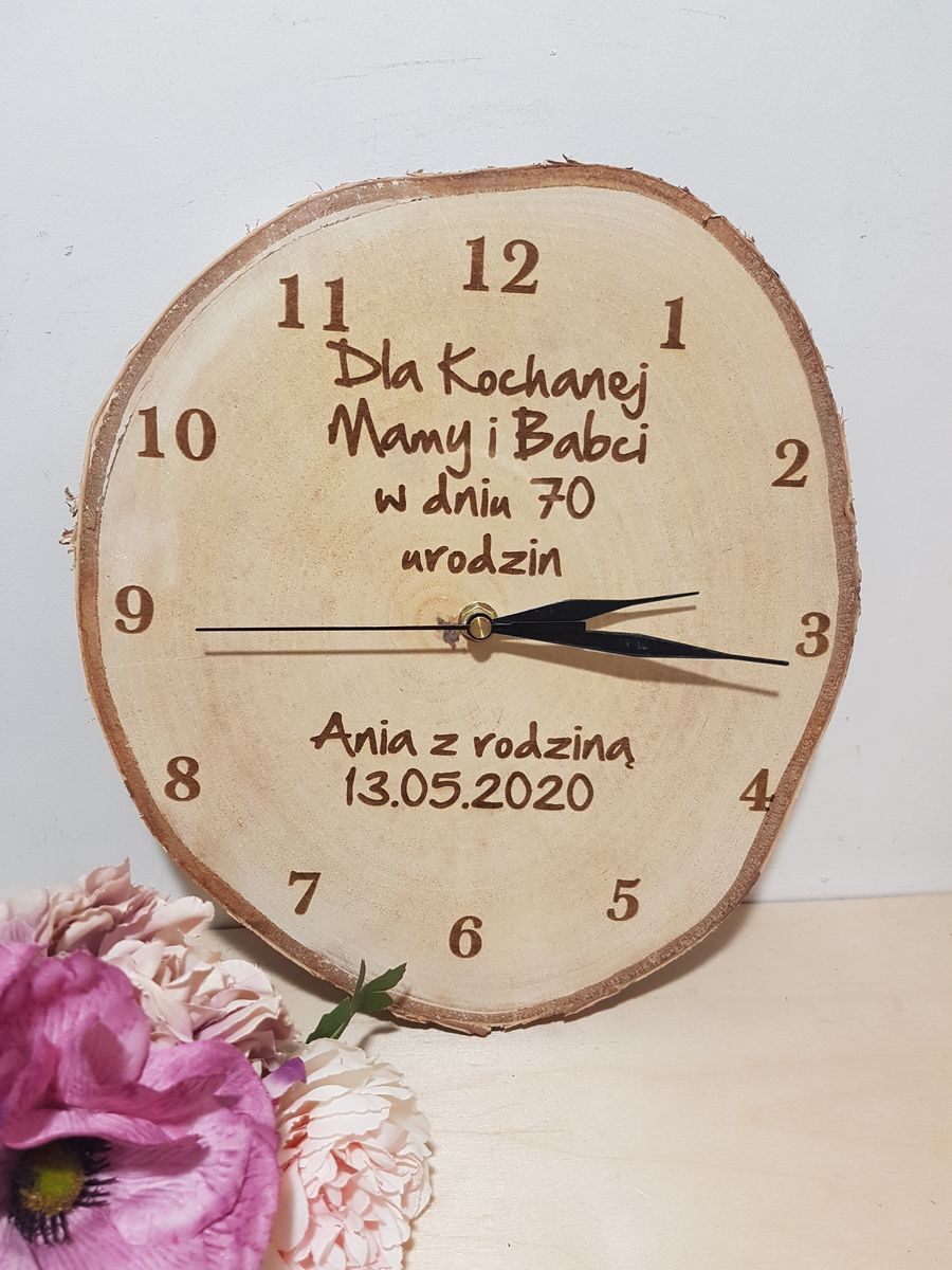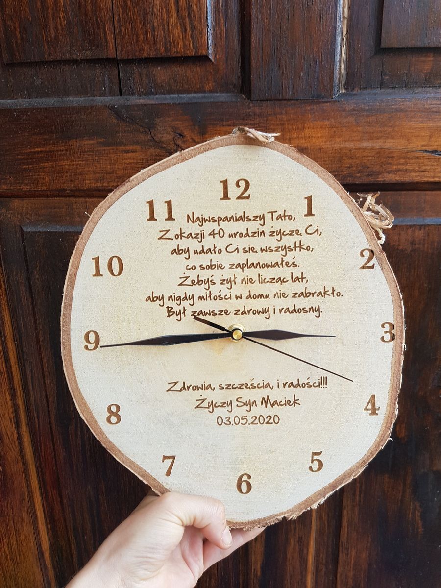 Zegar ozdobiony jest grawerowanym tekstem przesłanym przez Ciebie.