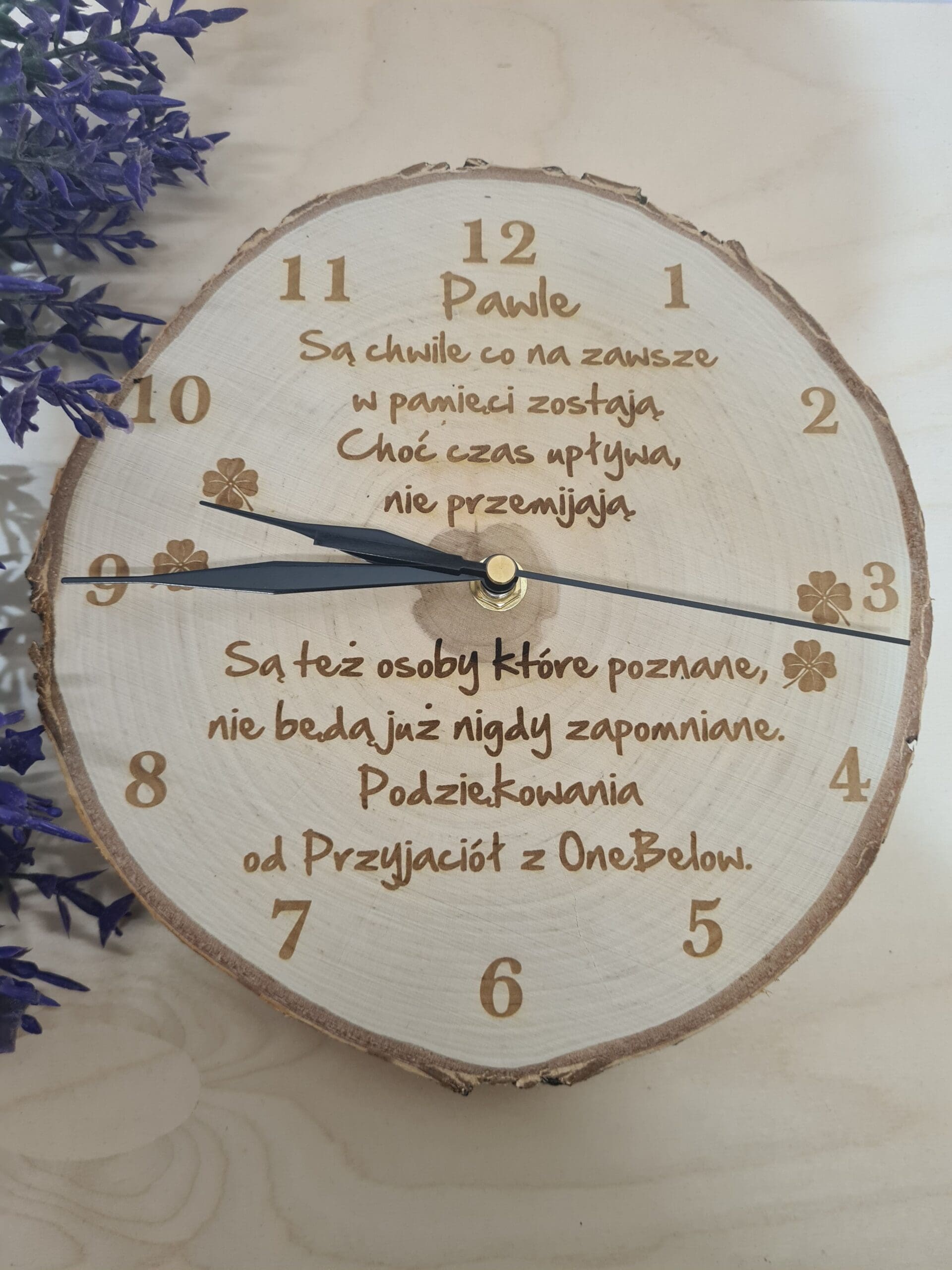 Zegar Ścienny Personalizowany na Plastrze Brzozy – „Są chwile co na zawsze w pamięci zostają” – Prezent na Pożegnanie z Pracy