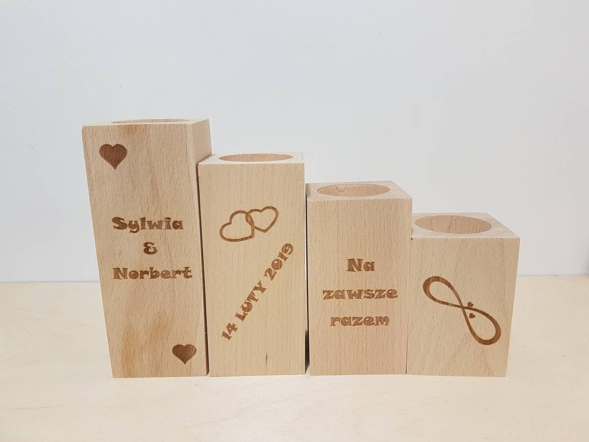 Nie masz pomysłu na praktyczny prezent dla Twoich bliskich? Chciałbyś podarować coś oryginalnego? Mamy dla Ciebie doskonały pomysł – zestaw 4 grawerowanych świeczników. Przyda się nie tylko do nowoczesnego wnętrza, ale też podczas kolacji czy spotkań rodzinnych. Do świeczników można włożyć tealighty, co stworzy piękną dekorację.