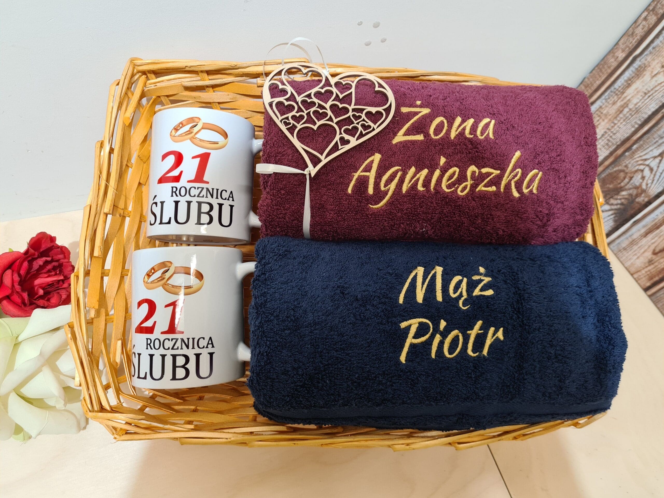 Szukasz idealnego prezentu na rocznicę ślubu, który łączy praktyczność z romantyzmem? Nasz zestaw dwóch miękkich ręczników kąpielowych i dwóch eleganckich kubków, pięknie zapakowanych w wiklinowy kosz, to strzał w dziesiątkę! Ręczniki zapewnią komfort po kąpieli, a kubki umilą wspólne poranki z kawą lub wieczory z herbatą. Ten zestaw to nie tylko prezent, to wyraz troski i miłości, który będzie przypominał o Waszej wyjątkowej więzi każdego dnia.